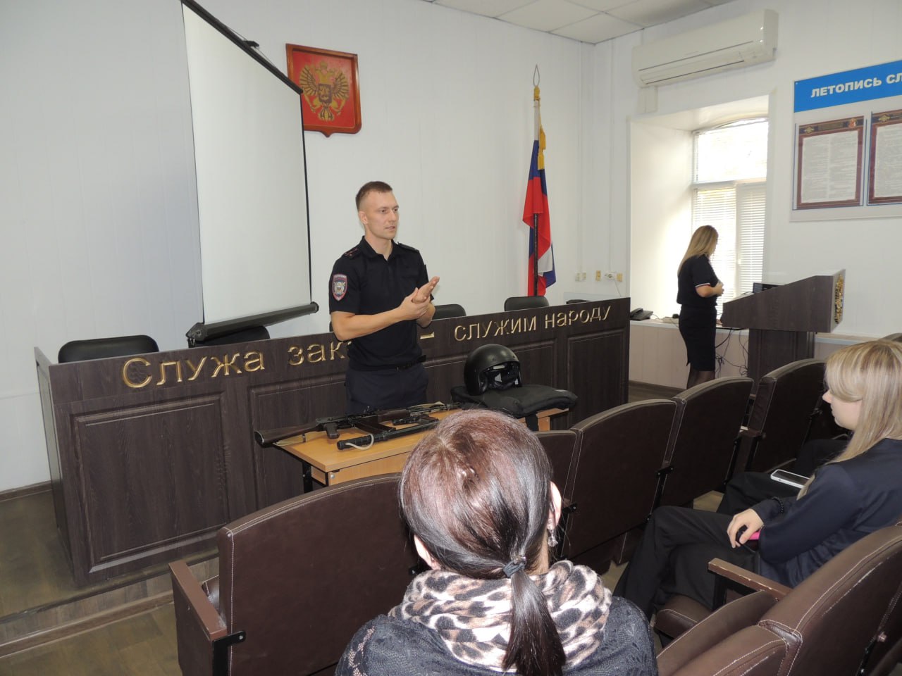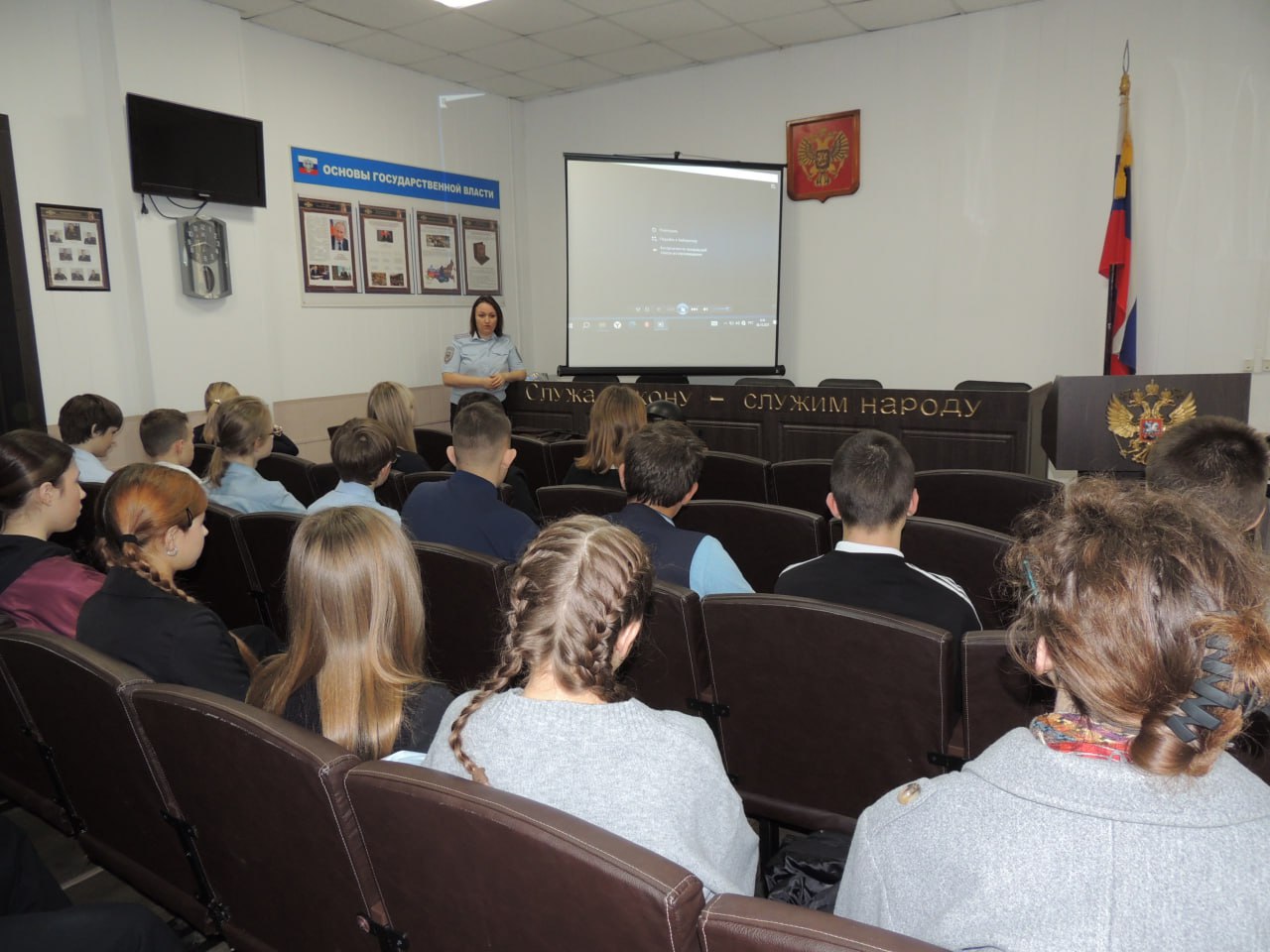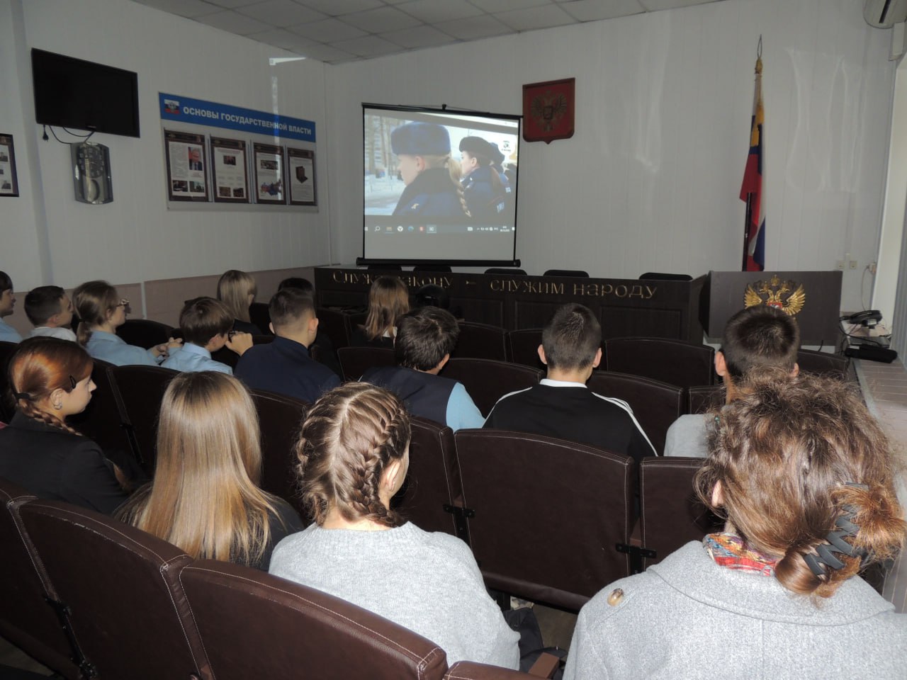 В завершение встречи сотрудники полиции рассказали о возможности поступления на службу в органы внутренних дел, о тех преимуществах, льготах и гарантиях, которыми пользуются сотрудники, а также об образовательных учреждениях системы МВД России и об условиях поступления. Для закрепления полученной информации был показан фильм о службе в органах внутренних дел и учебе в образовательных учреждениях МВД.