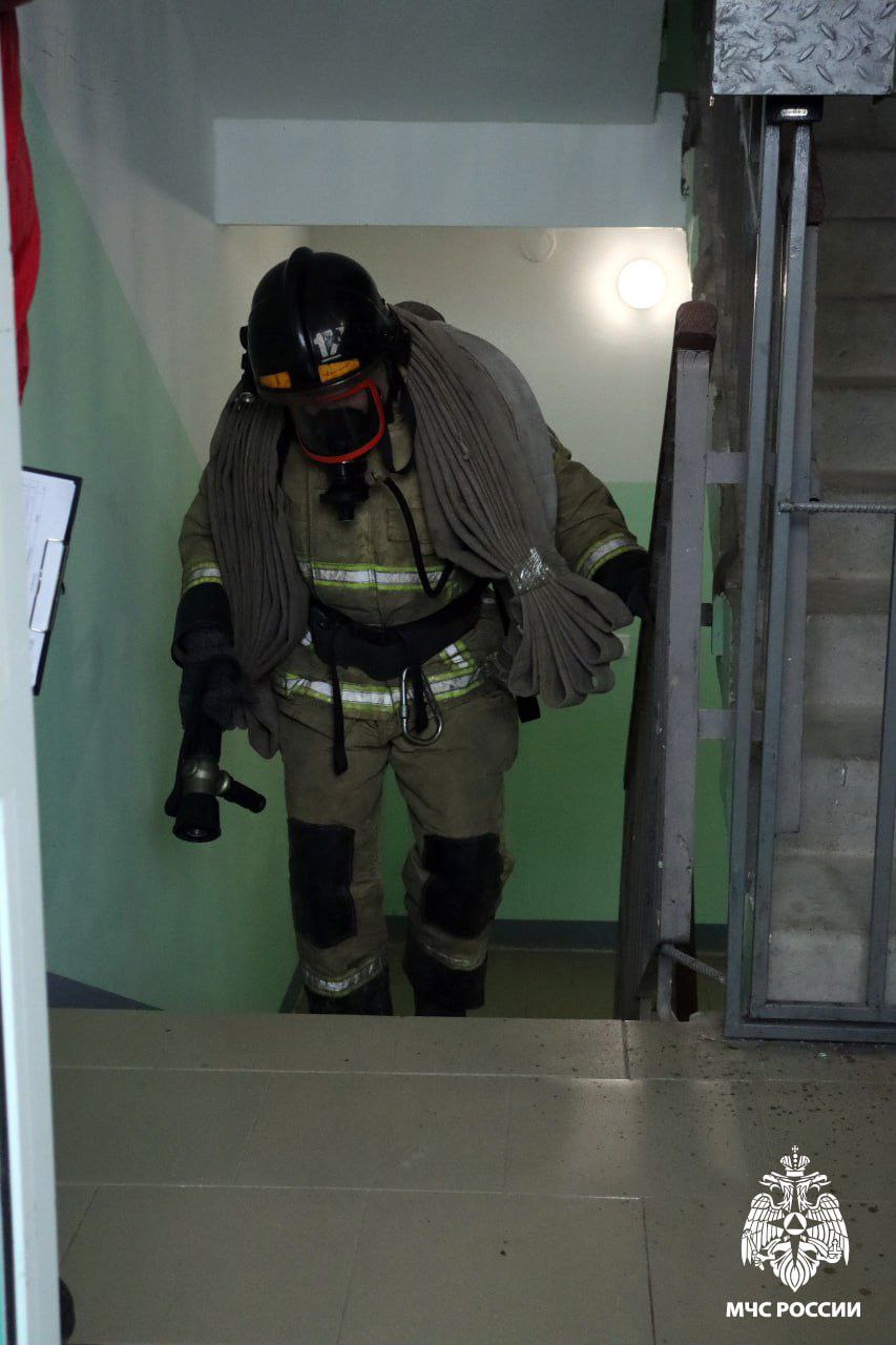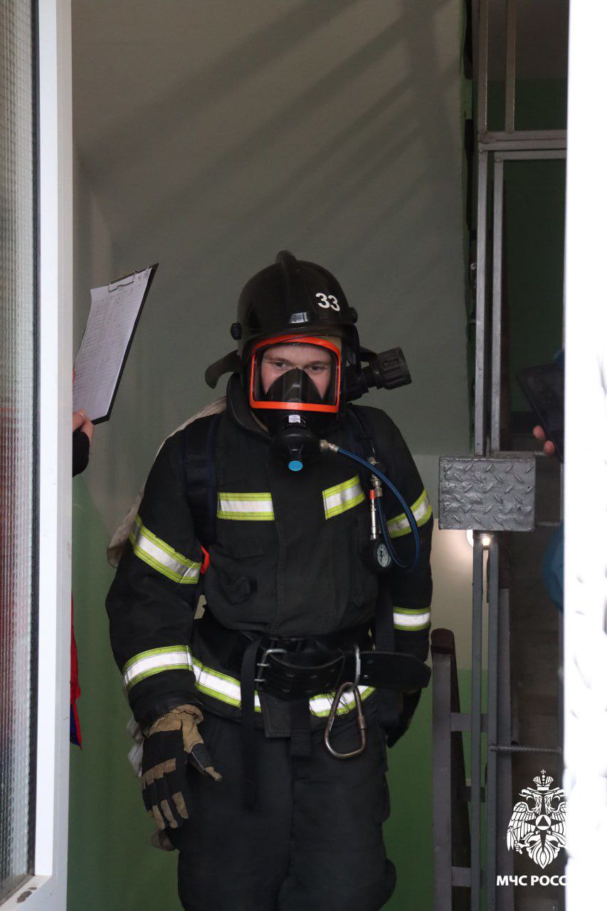 Сама боевая одежда вместе с баллоном и каской весят десятки килограмм. А ведь огнеборцы несли на себе пожарные рукава и дышали с помощью специального аппарата. Всё, как на настоящем пожаре.