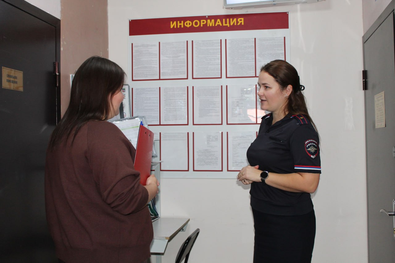 Далее Екатерина Акуличева проверила работу группы по делам несовершеннолетних, побеседовав с инспектором ПДН Марией Кувайковой.