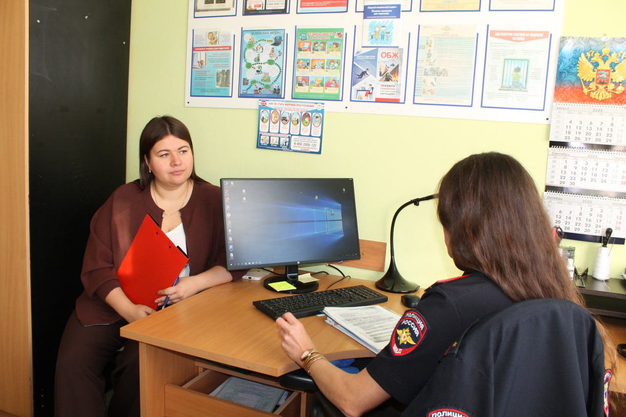В ходе беседы Екатерина Акуличева задала вопросы о профилактике преступлений и правонарушений среди несовершеннолетних. Сотрудник полиции пояснила, что с подростками и их родителями ведется индивидуальная профилактическая работа, обследуются семейно-бытовые условия, проводятся беседы о недопустимости противоправного поведения. В завершение встречи Екатерина Акуличева и Мария Кувайкова договорились о совместной работе, направленной на профилактику преступлений, совершаемых несовершеннолетними.