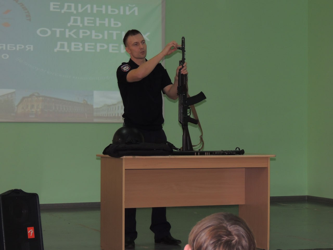 Полицейские показали сборку и разборку автомата, рассказали, как амуниция и спецсредства помогают им нести службу и оберегают их жизнь в опасных ситуациях.