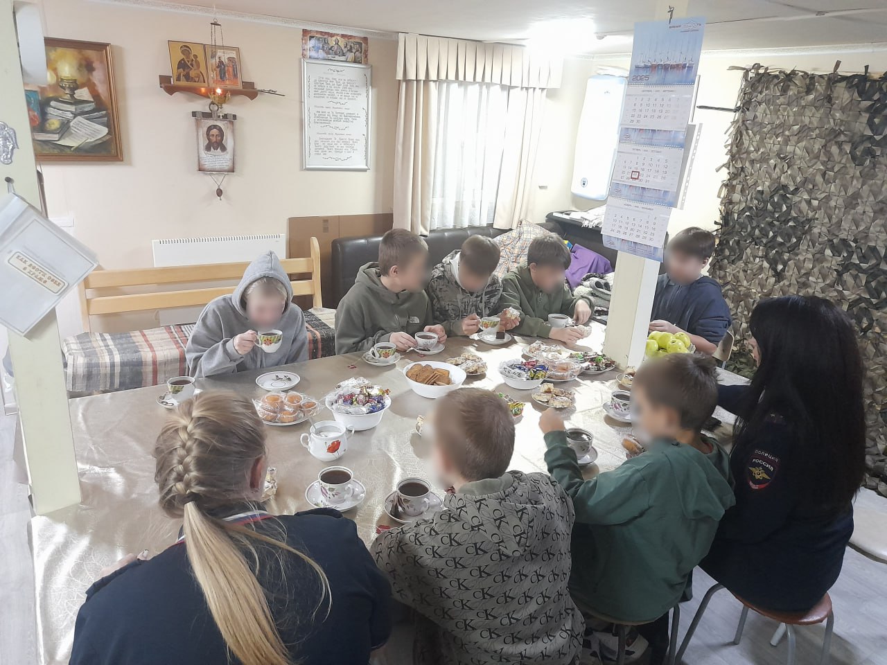 Школьные каникулы для воспитанников Центра временного содержания несовершеннолетних правонарушителей УМВД России по Вологодской области начались с посещения воскресной школы при вологодском храме св. Спиридона Тримифунтского. Завуч школы Анастасия Чупракова побеседовала с подростками о различных аспектах духовного и нравственного здоровья, рассказала об истории православия, устройстве храма, святынях. В трапезной для ребят организовали чаепитие, во время которого детям рассказали о христианских традициях семьи.