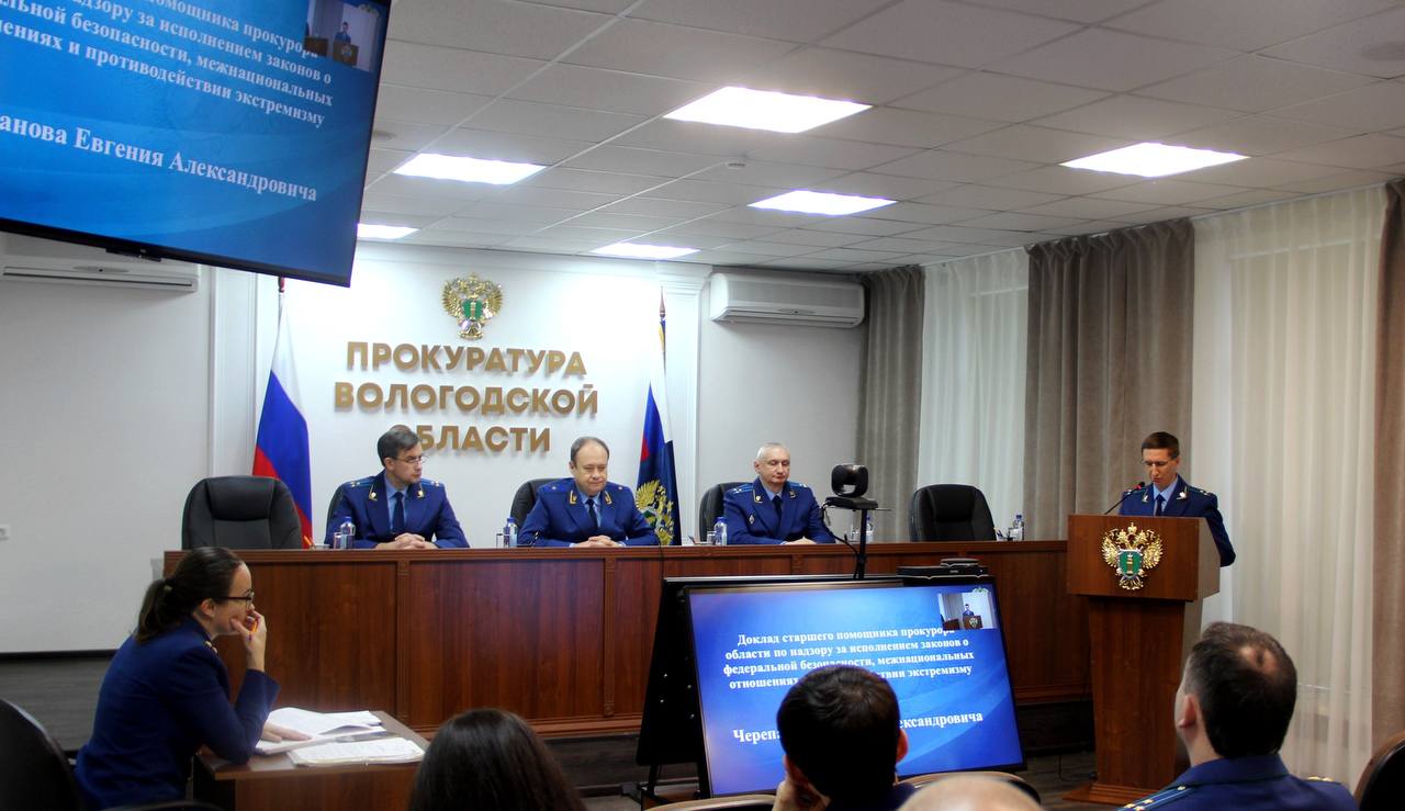 Сегодня, 07 ноября, в прокуратуре Вологодской области под председательством прокурора области Андрея Тимошичева состоялось расширенное заседание коллегии по обсуждению результатов анализа состояния законности и практики прокурорского надзора за исполнением законодательства о противодействии экстремистской деятельности и терроризму.