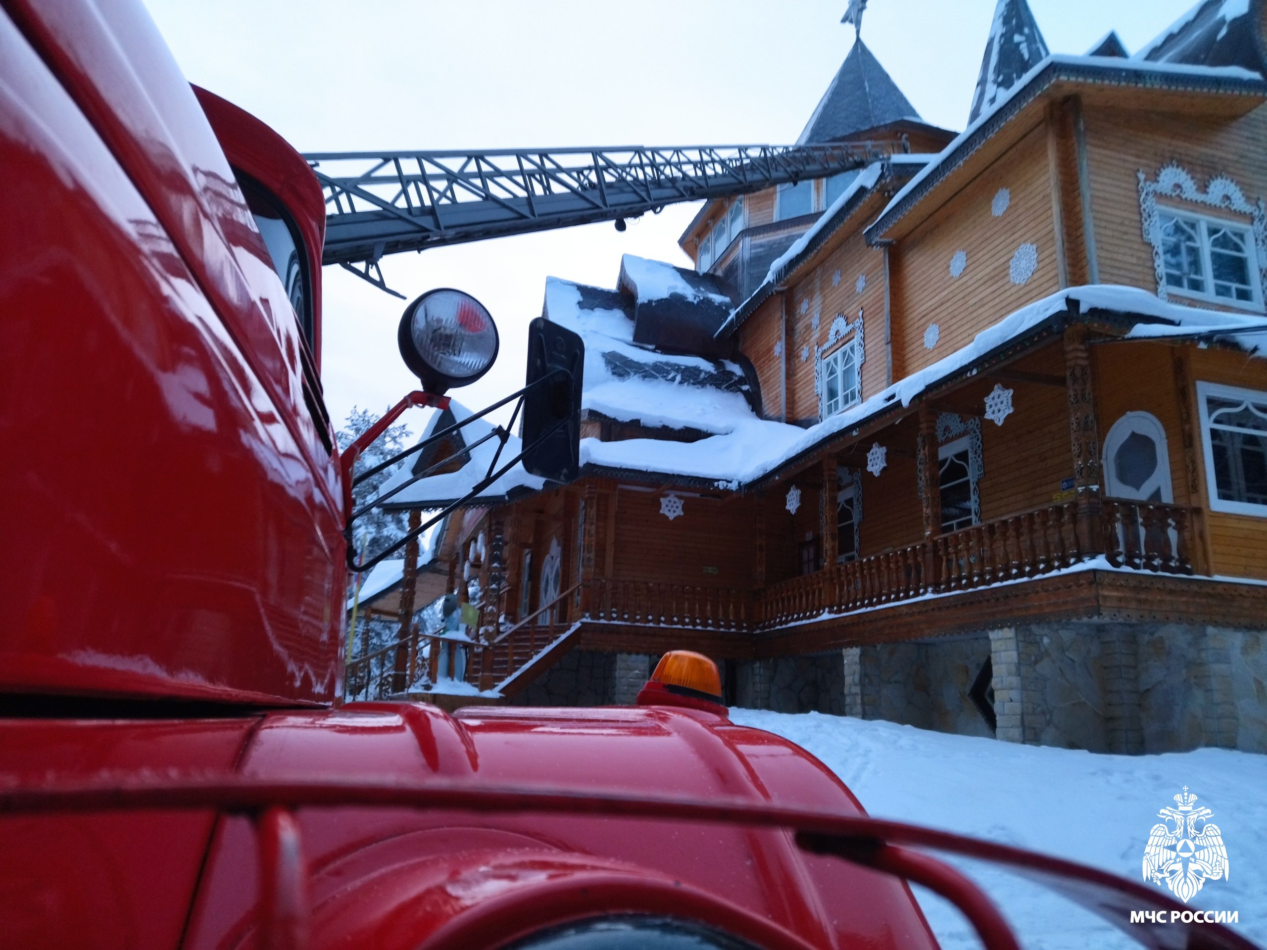 Особое внимание было уделено эвакуации работников и посетителей из дома Деда Мороза, что является важным элементом обеспечения безопасности на объекте.