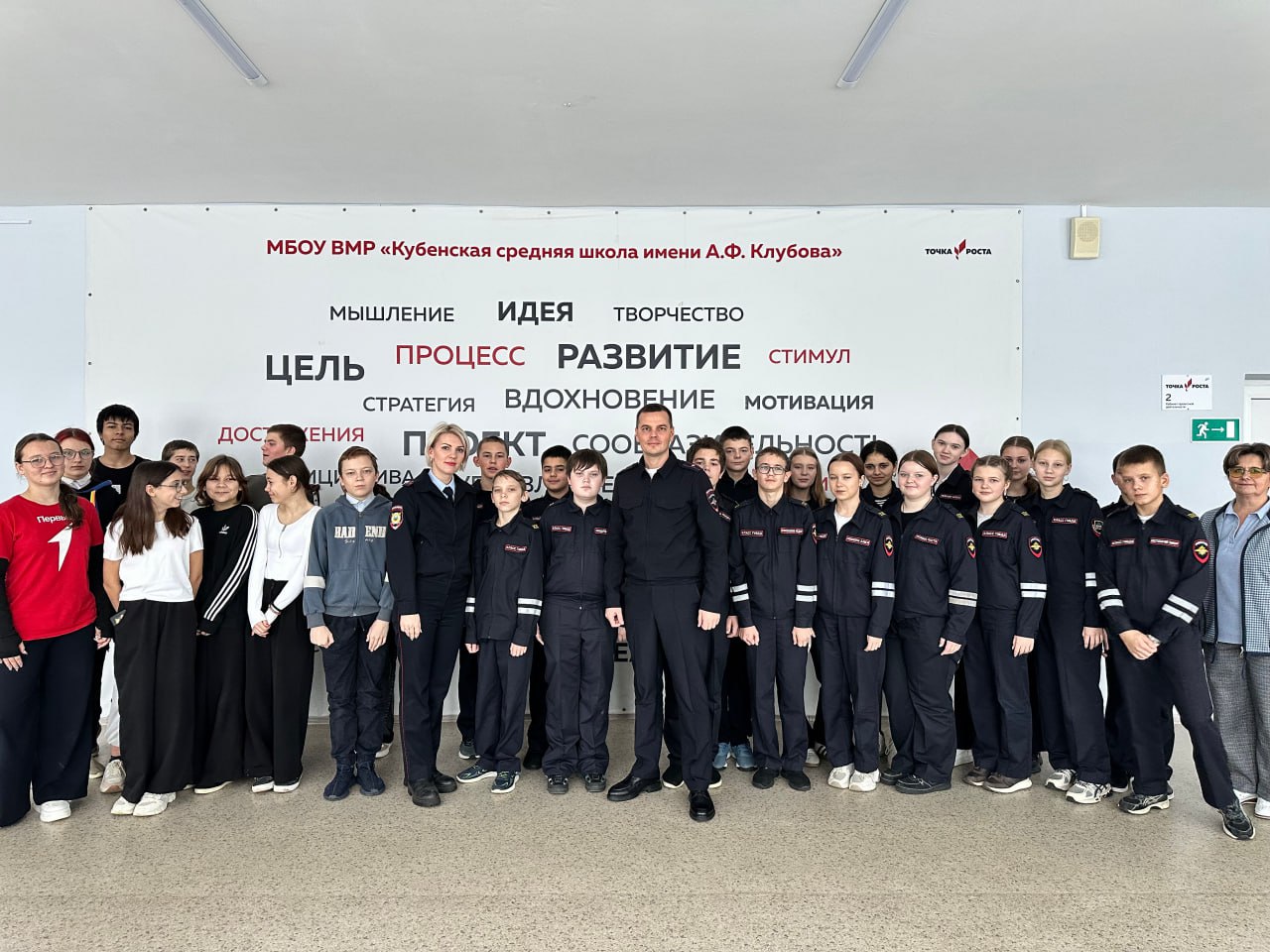 Сотрудники отдела МВД России «Вологодский» провели профориентационное мероприятие для учащихся кадетского класса направленности Госавтоинспекции в Кубенской средней школе.