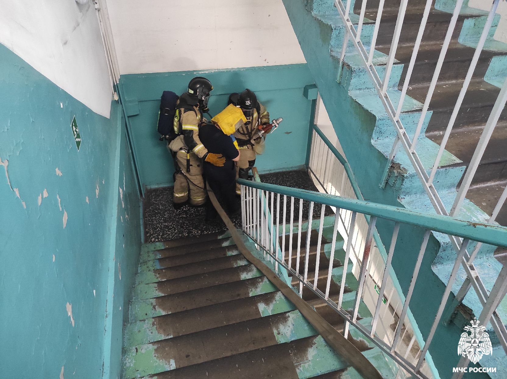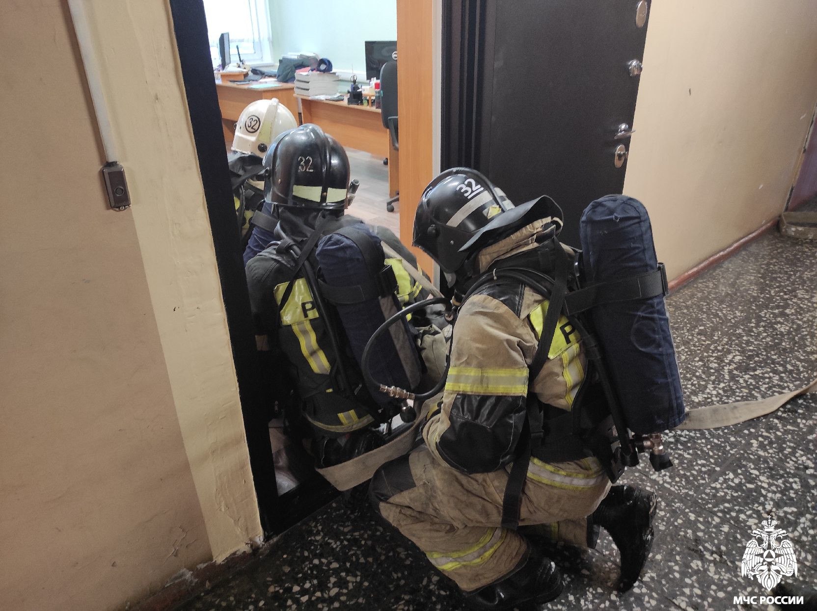 Огнеборцы 32 пожарно-спасательной части МЧС России ликвидировали условное возгорание, нашли и вывели в специальных спасательных устройствах на свежий воздух тех, кто по условиям учений не смог самостоятельно покинуть опасную зону.