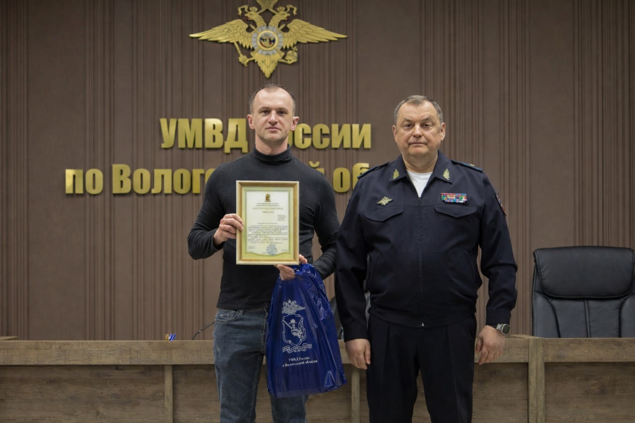 Начальник УМВД России по Вологодской области Павел Серов поблагодарил представителей учебной группы «Вулкан»