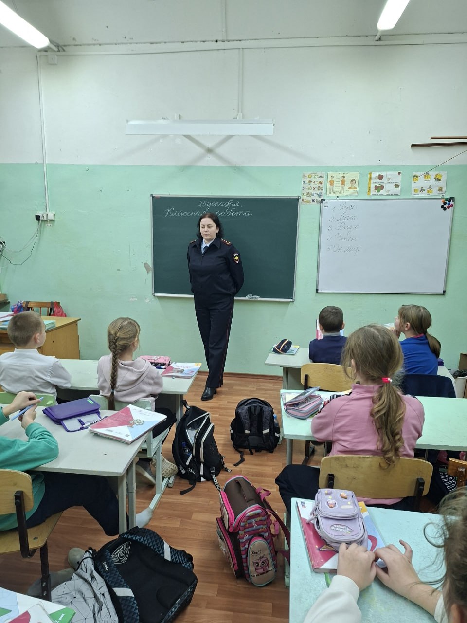 В гости к учащимся 2А класса Кадуйской школы номер 1 им. В В. Судакова пришли инспектор-руководитель группы делопроизводства и режима Марина Иванова и начальник тыла Александр Цапов. Марина Александровна напомнила детям о правилах дорожного движения, о том, что на санках, лыжах и ватрушках не допускается кататься по дорогам, а также о том, что лёд на реках небезопасен для катания на коньках. Рассказала учащимся о комендантском часе.