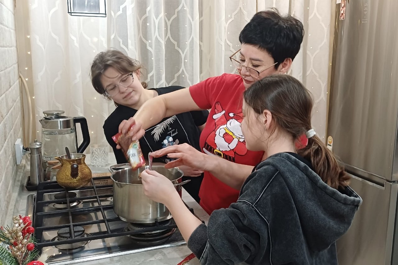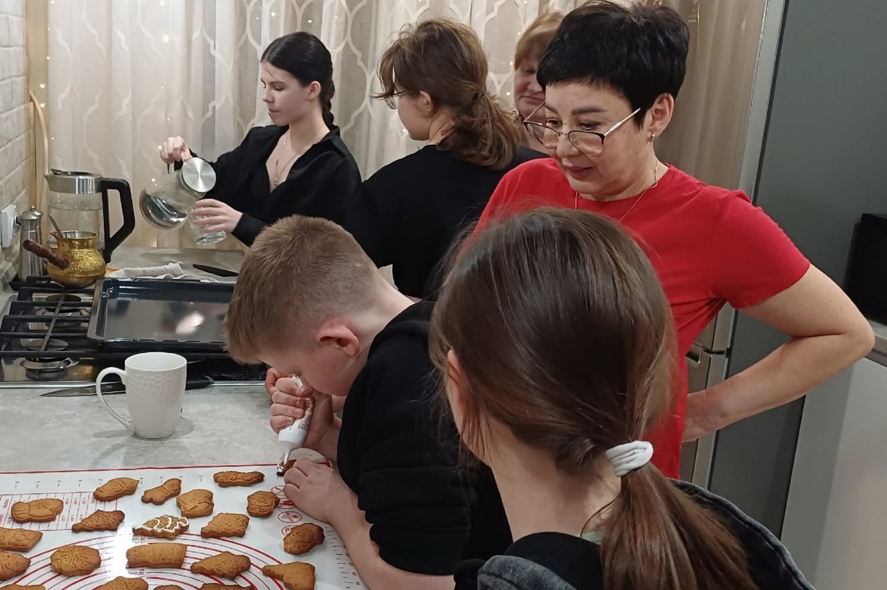Председатель ОС Елизавета Глизница встречала гостей у себя дома. Мальчишек и девчонок ждал мастер-класс по выпечке имбирного печенья в праздничной домашней обстановке. Ребята самостоятельно замешали тесто, с помощью форм вырезали печенье и украсили получившиеся фигурки. Кроме того, Елизавета Анатольевна научила подростков сервировке стола, рассказала о семейных традициях.