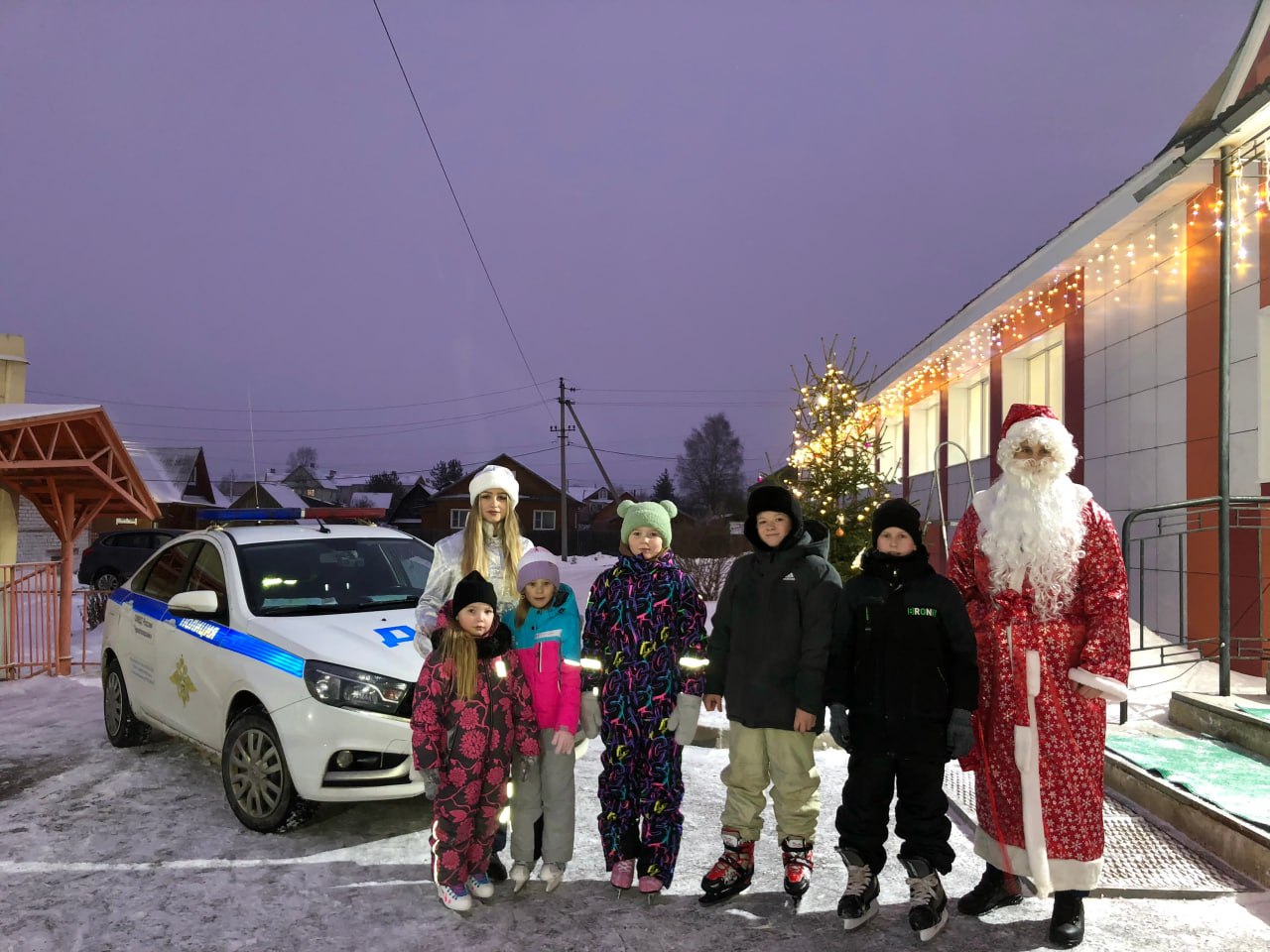 По старой доброй традиции инспекторы предстали перед ребятами в красочных костюмах главных новогодних персонажей – Деда Мороза и Снегурочки.
