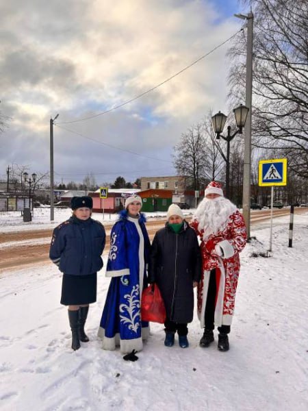 В поселке Чагода госавтоинспекторы присоединились к Всероссийской акции "Полицейский Дед Мороз" и поздравили участников дорожного движения с Новым годом. В образе Полицейского Деда Мороза и Снегурочки стражи правопорядка напоминали автомобилистам, что именно соблюдение всех требований ПДД является залогом безопасности на дороге. Также обращали внимание, что при выходе из автомобиля водитель автоматически становится пешеходом, и очень важно быть заметным на проезжей части, особенно при меняющихся зимних погодных условиях, а также в темное и сумеречное время суток и в условиях недостаточной видимости.