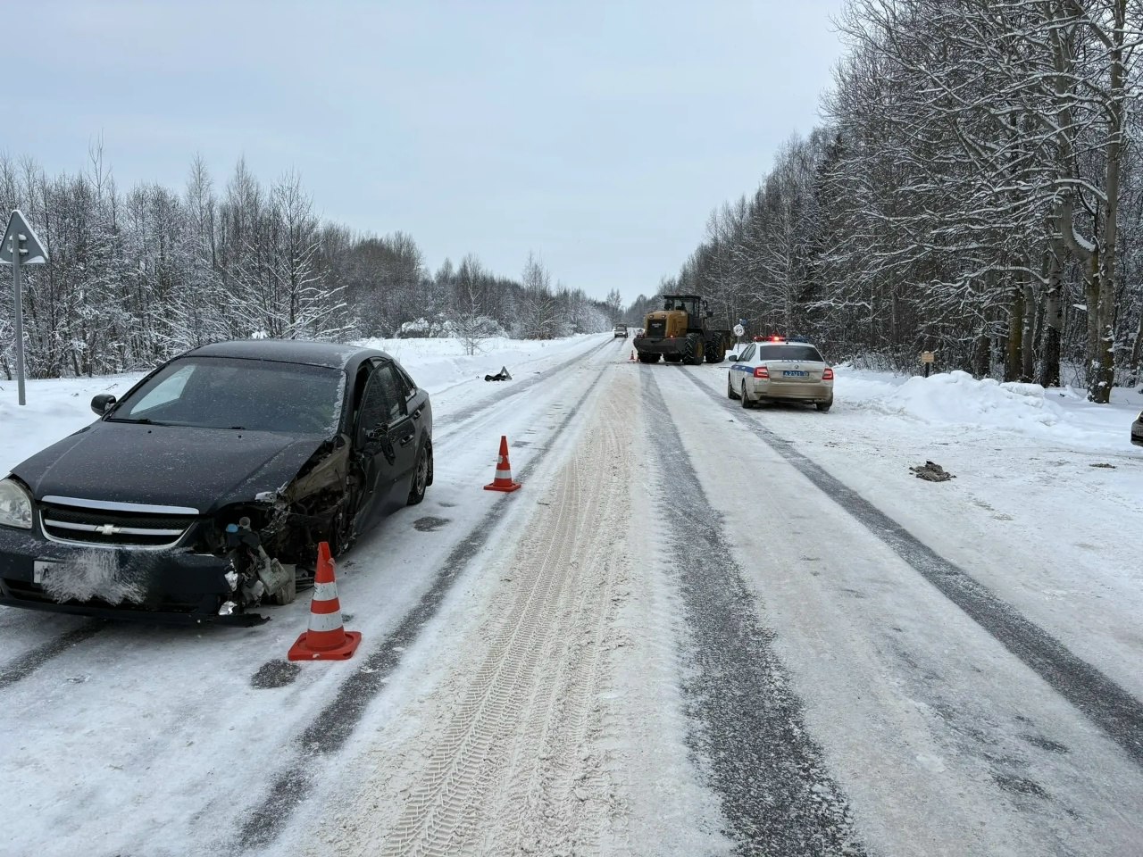 ДТП произошло сегодня около 08:40 на 6 км автодороги Прилуки – Дубровское. По предварительной информации, водитель, мужчина 1954 г.р., управляя автомобилем Шевроле Клан, двигаясь в прямом направлении со стороны п. Кубенское в сторону г. Вологды, при выполнении обгона допустил столкновение с фронтальным погрузчиком под управлением мужчины 1971 г.р., который двигался во встречном направлении.