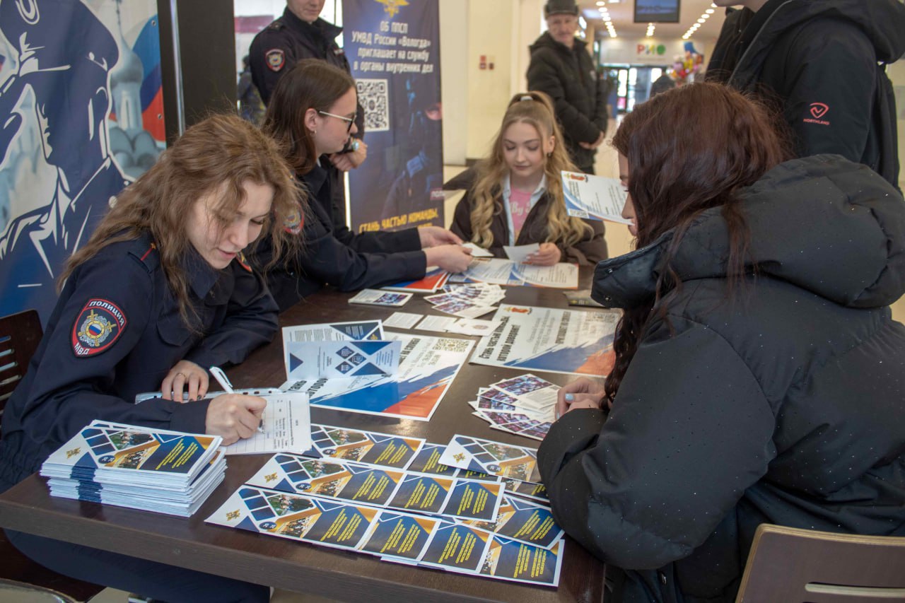 Сотрудники УМВД России по Вологодской области в рамках профориентационных мероприятий открыли временные центры рекрутинга в Вологде и Череповце.