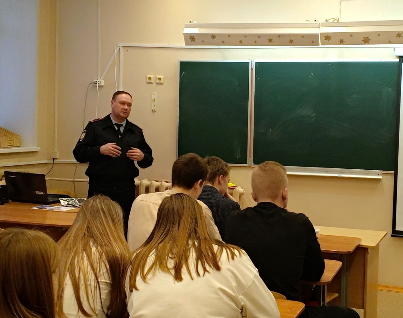 В рамках Всероссийской акции «Студенческий десант» заместитель начальника — руководитель ГРЛС ОМВД России «Никольский» Александр Колтаков провел ряд профориентационных мероприятий для учащихся школы № 1.