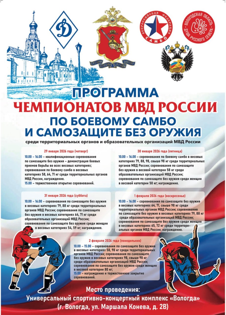 Вологда готовится принять одно из самых зрелищных событий в мире силовых видов спорта – чемпионат МВД России по боевому самбо и самозащите без оружия.
