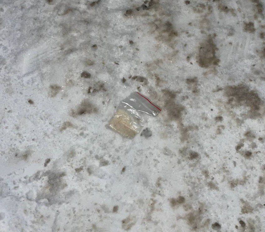 Сотрудникам патрульно-постовой службы УМВД России «Вологда» поступила информация, что по адресу ул. Ловенецкого у его подъезда в сугробе лежит мужчина. Прибывшие на место патрульные обнаружили мужчину с явными признаками наркотического опьянения. Гражданин 1982 г.р. не смог пояснить причины своего пребывания у указанного дома. При наружном осмотре подозреваемый резко засунул руку в карман куртки и выбросил на землю полиэтиленовый пакетик с неизвестным веществом.