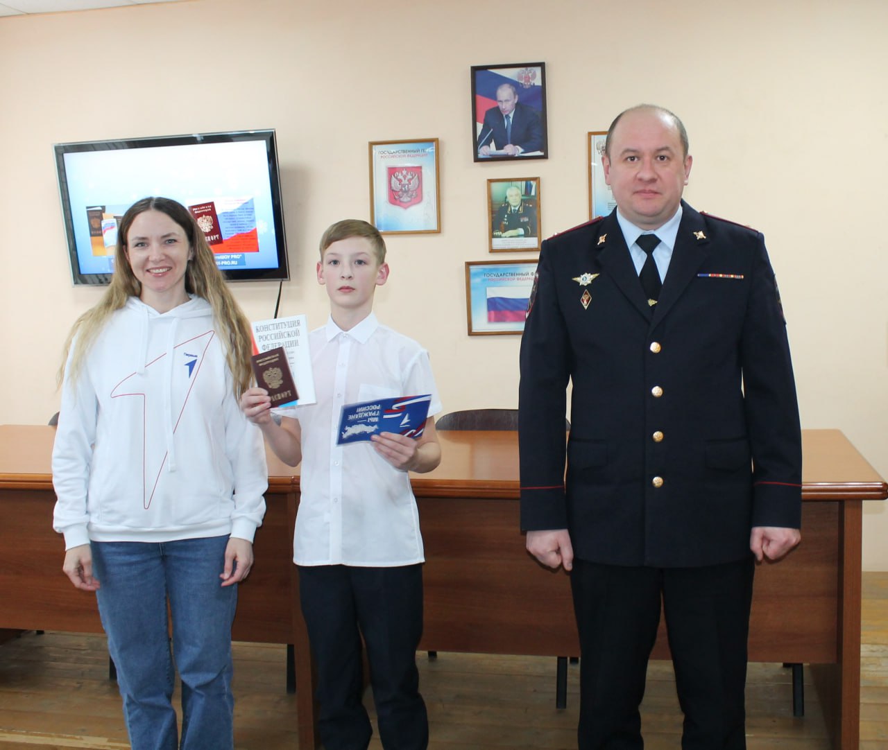 Вместе с паспортом каждый школьник получил экземпляр Конституции России и обложку для паспорта от представителя местного отделения «Движение первых» Ирины Сакулиной.