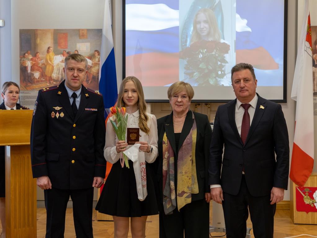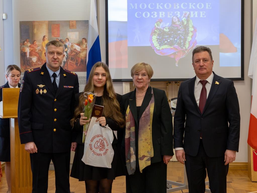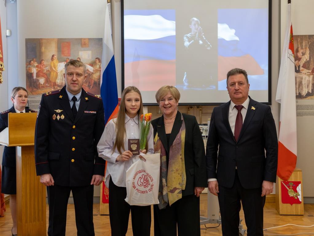 Юные вологжанки получили самый главный документы из рук сенатора Российской Федерации Евгения Богомазова, заместителя начальника областного УМВД Александра Дерягина, а также председателя регионального совета ветеранов Надежды Тихомировой.