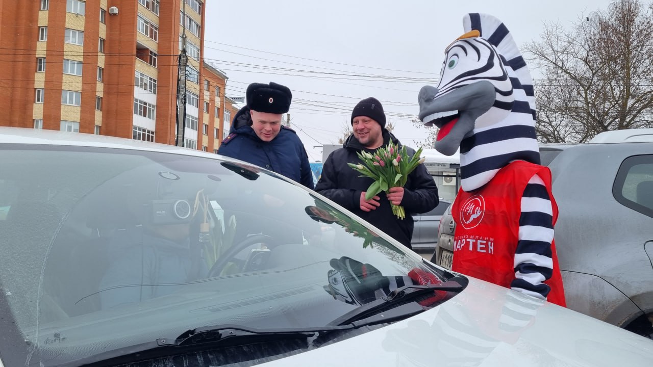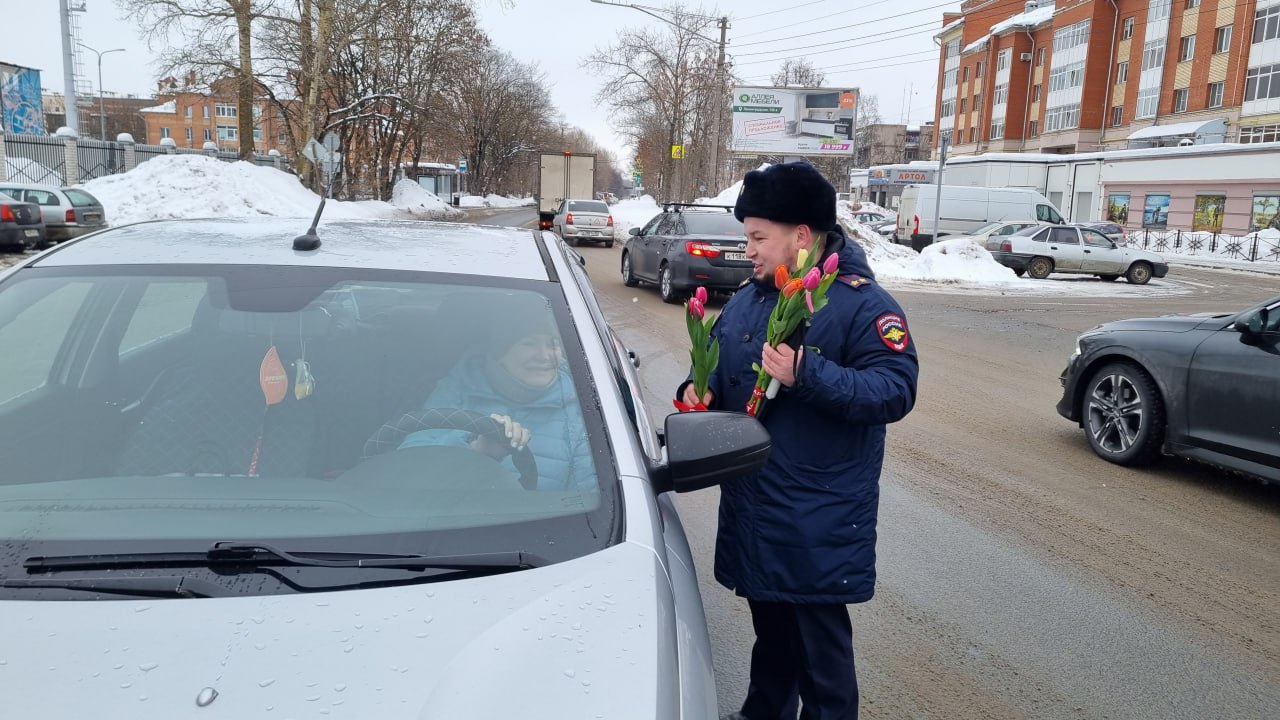 Сотрудники отдела Госавтоинспекции УМВД России «Вологда» совместно с представителями общественности провели ежегодную акцию «Цветы для автоледи»