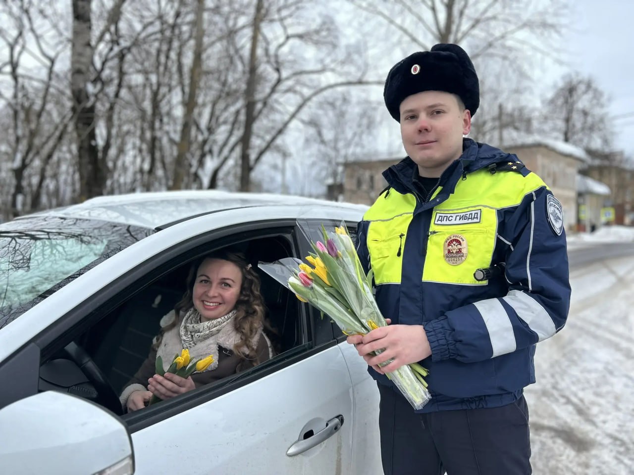 «Мы хотели подарить хорошее настроение и сделать этот день особенным для женщин», — отметил руководитель отдела Александр Яковлев. «Важно не только следить за безопасностью на дорогах, но и радовать людей.»