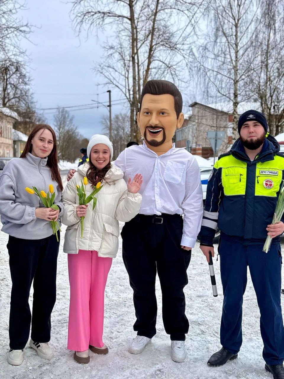 Подаренные цветы и теплые слова от аниматора и сотрудников Госавтоинспекции стали приятным напоминанием о том, что забота и внимание могут проявляться в самых неожиданных формах. Женщины, получившие тюльпаны, были тронуты таким вниманием и искренне благодарили за поздравления.