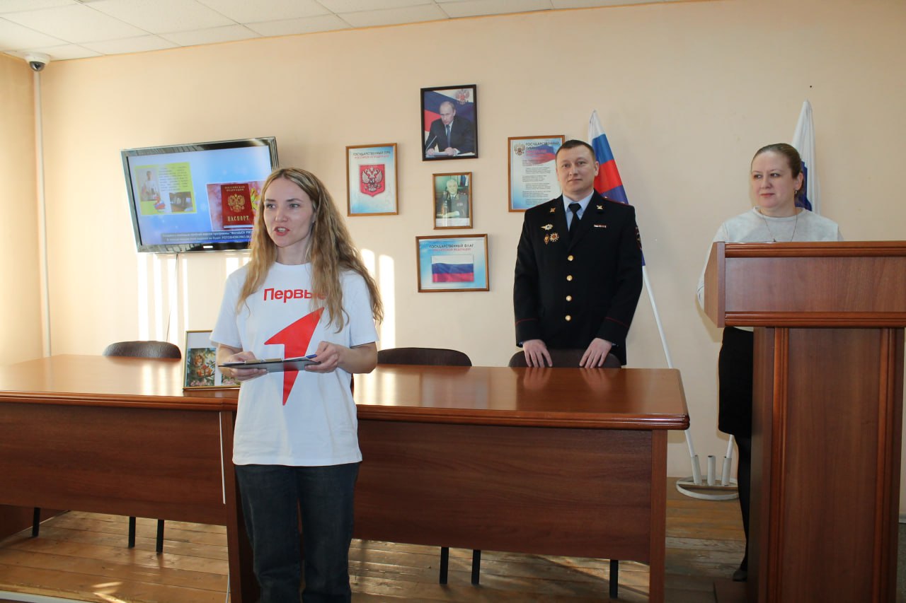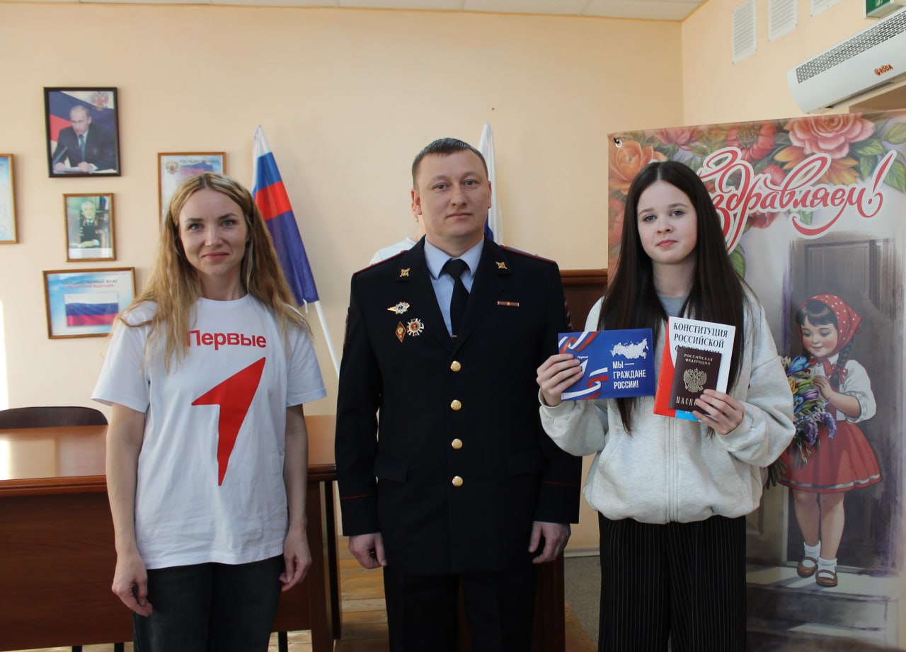 На церемонии вручения документа присутствовали: начальник полиции ОМВД России «Никольский» Сергей Попов, начальник Миграционного пункта Наталья Вершинина и представитель местного отделения «Движение первых» Ирина Сакулина.