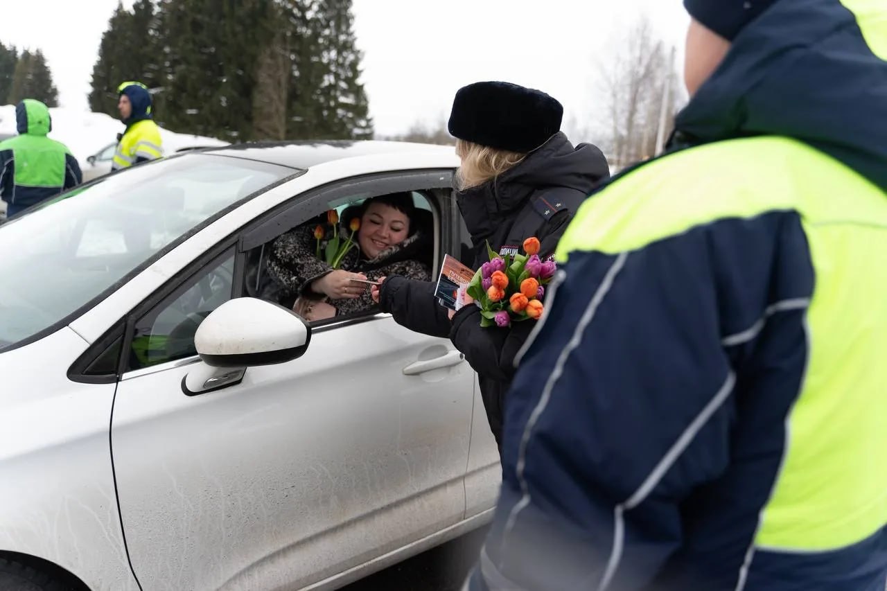 Сотрудники Госавтоинспекции Вологодского округа устроили женщинам приятный сюрприз на дороге
