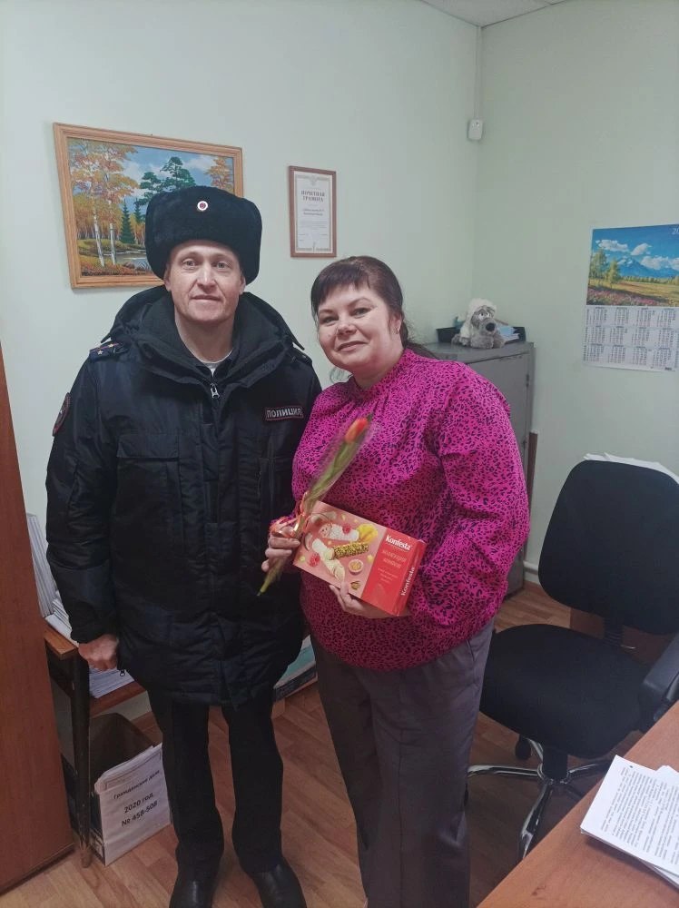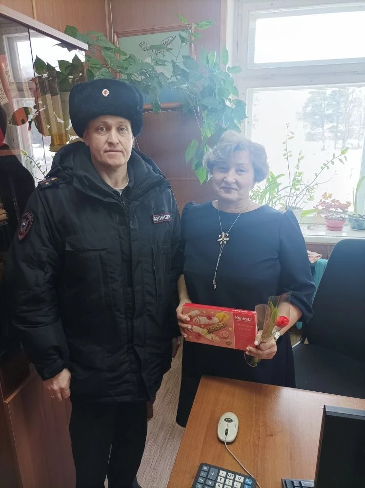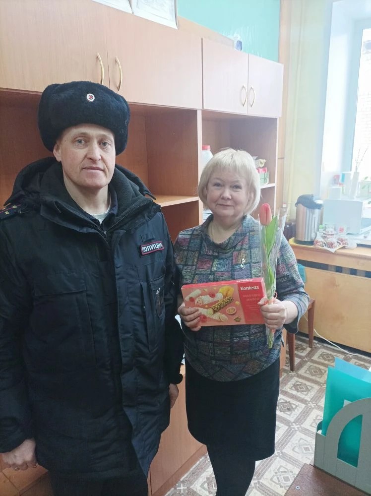 Сотрудники Отд МВД России «Тарногское» вручили цветы, подарки и поздравительные адреса с самыми искренними пожеланиями. В ходе беседы гости не только поздравляли женщин с наступающим 8 Марта, но и провели беседы по профилактике мошенничества, вручив памятки.