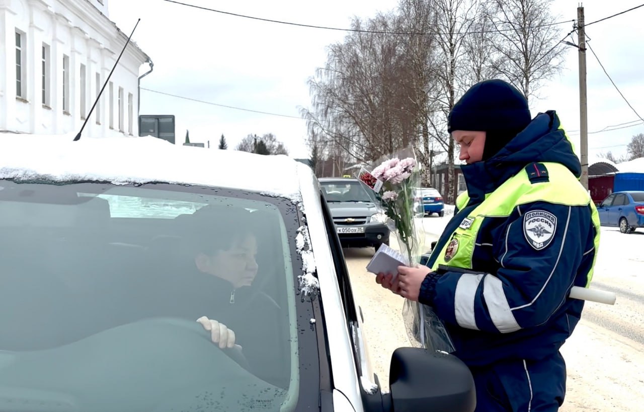 Дорожные полицейские Верховажья и Кадуя присоединились к акции «Цветы для автоледи»