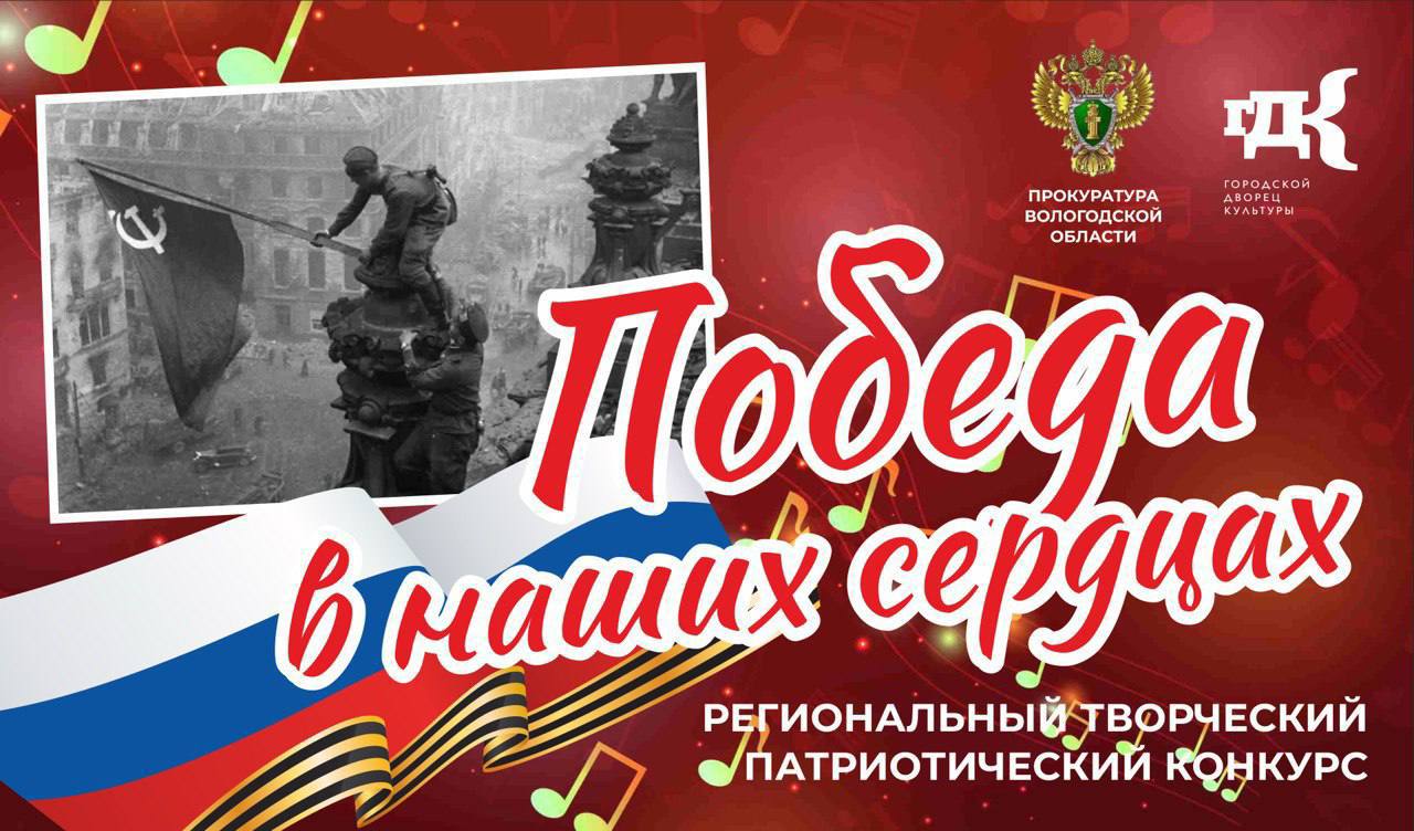 Прокуратура Вологодской области совместно с Городским Дворцом культуры г. Вологды в преддверии празднования 81-й годовщины Победы в Великой Отечественной войне проводят региональный творческий патриотический конкурс «Победа в наших сердцах».