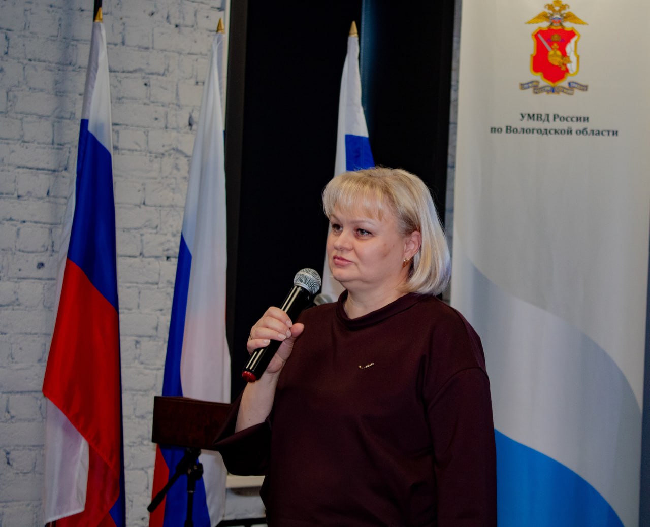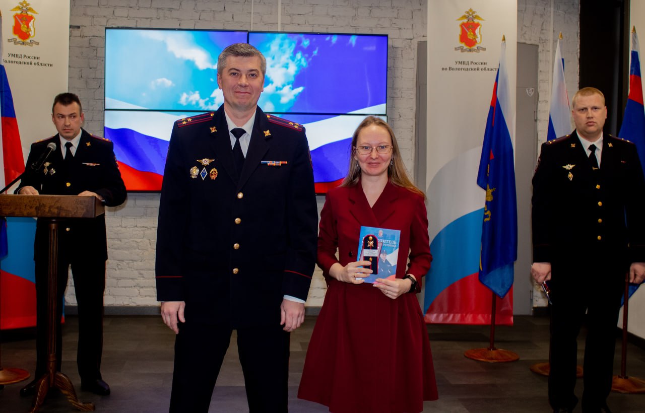 Поздравить виновников торжества пришли председатель Совета ветеранов Вологодского регионального отделения Общероссийской общественной организации ветеранов ОВД Евгений Борисович Меркурьев и ветеран МВД, полковник внутренней службы в отставке Оксана Галихина.