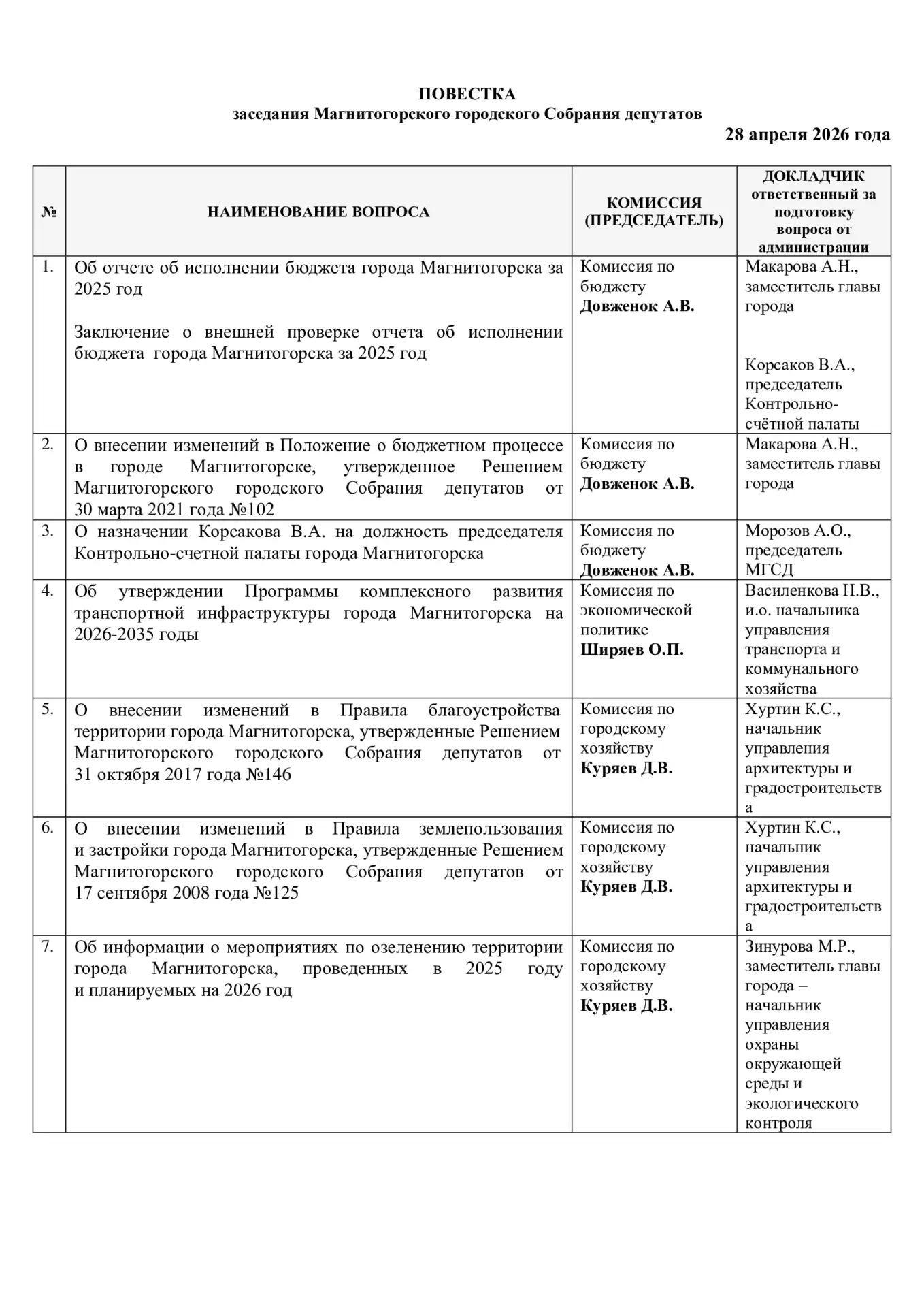 Напомним, заседание Магнитогорского городского Собрания в прямом эфире можно будет посмотреть в эфире телеканала «ТВ-ИН», а также на нашем сайте, в группе МГСД «ВКонтакте» и на других информационных порталах города.