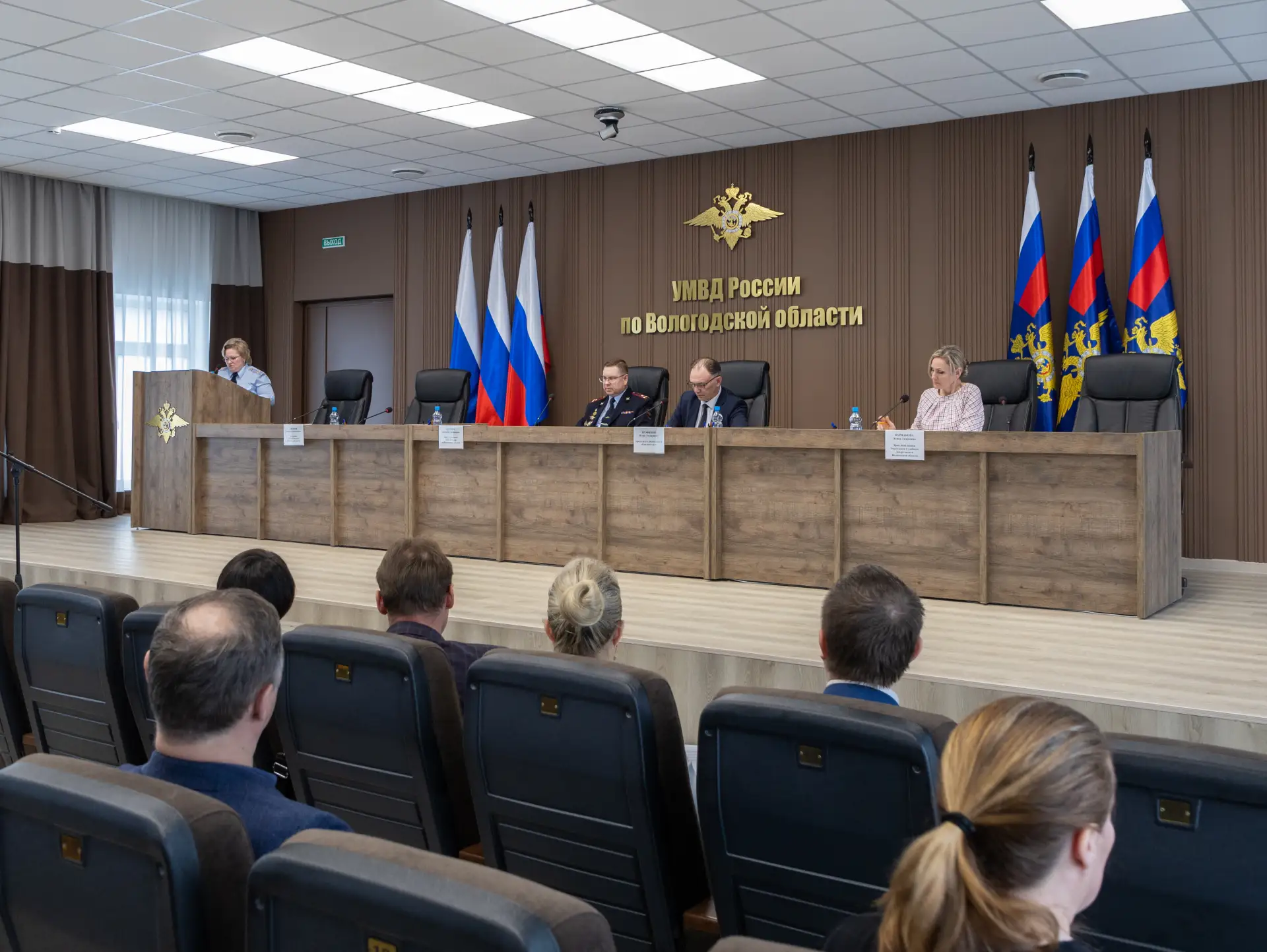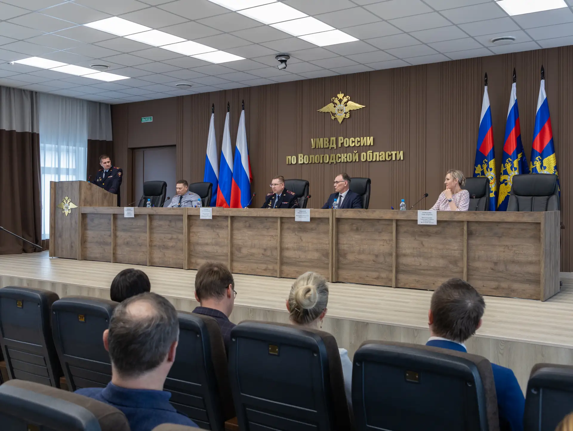 В межведомственном совещании приняли участие врио начальника УМВД России по Вологодской области Денис Озорнин, председатель Вологодского областного суда Игорь Трофимов, начальник регионального УФСИН Дмитрий Кибанов, врио начальника Управления Судебного Департамента Вологодской области Элина Варнакова, а также руководители подразделений этих ведомств.