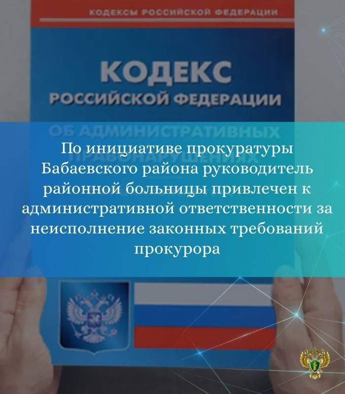 В рамках указанной проверки у руководителя Бабаевской центральной районной больницы были запрошены необходимые документы. Однако запрошенная информация в соответствии с требованиями прокуратуры своевременно не была представлена.В связи с неисполнением...