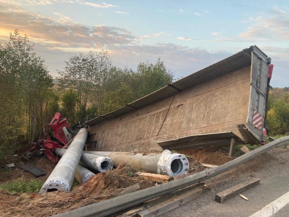 ДТП произошло сегодня в 16:40 на 340 км трассы А119. По предварительной информации, водитель груженой фуры MAN не справился с управлением и допустил съезд в кювет с последующим опрокидыванием транспортного средства. Водитель 1970 г.р. погиб...