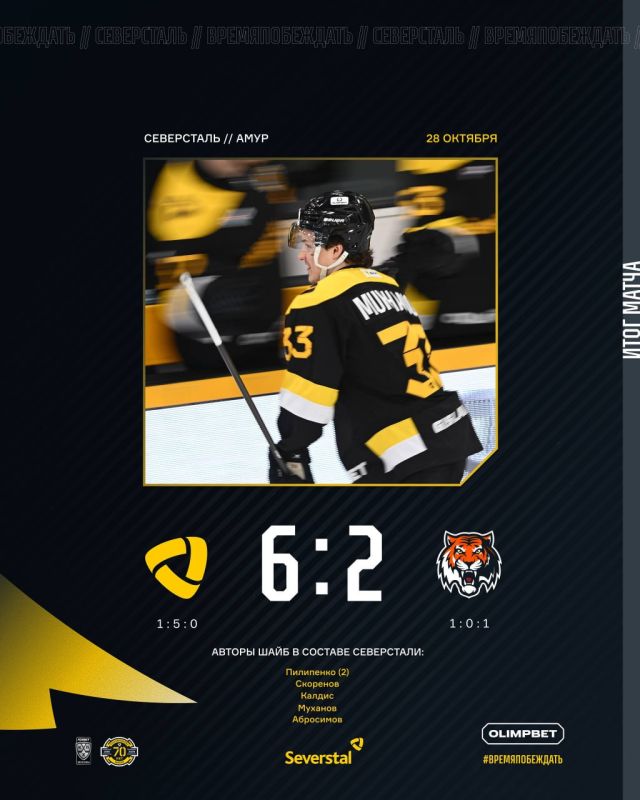 Только что клуб из Вологодской области разгромил дома команду «Амурские тигры» со счётом 6:2. В составе «желто-черных» отличились Пилипенко - дважды, Скоренов, Калдис - дважды, Муханов. «Северсталь» возглавила турнирную таблицу Запада...