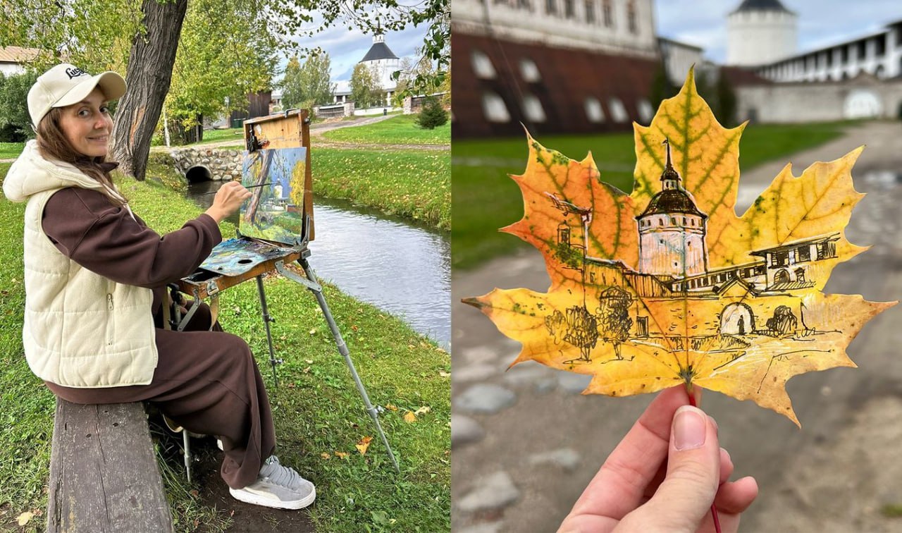 Художница из Череповца Екатерина Крылова удивила своих почитателей материалом. Она изобразила фортификационные сооружения Кирилло-Белозерского монастыря на... пожелтевшем кленовом листе.
