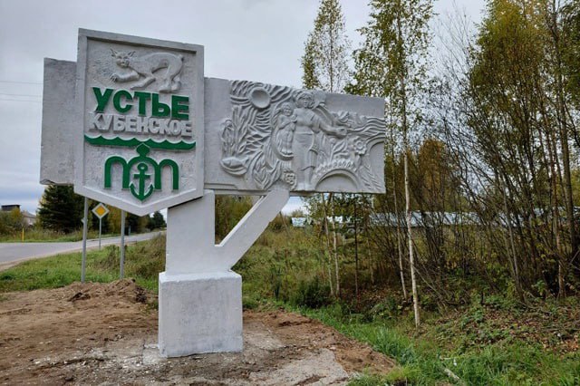 Старая въездная стела в селе Устье, за сохранение которой активно выступали жители Усть-Кубинского округа, теперь встречает гостей с новой стороны. Она была перенесена с автодороги из Вологды и теперь радует глаз приезжающих со стороны Никольского, Бережного и Богородского.