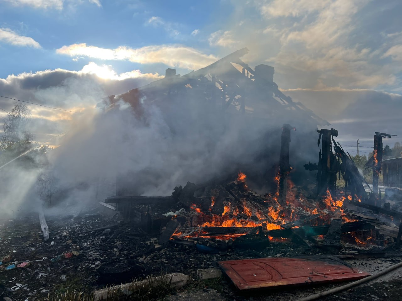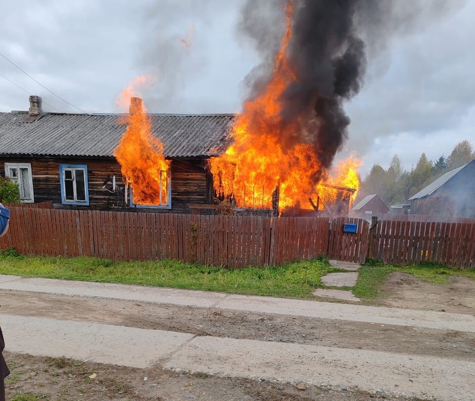 Пожар уничтожил двухквартирный дом в Вытегорском округе