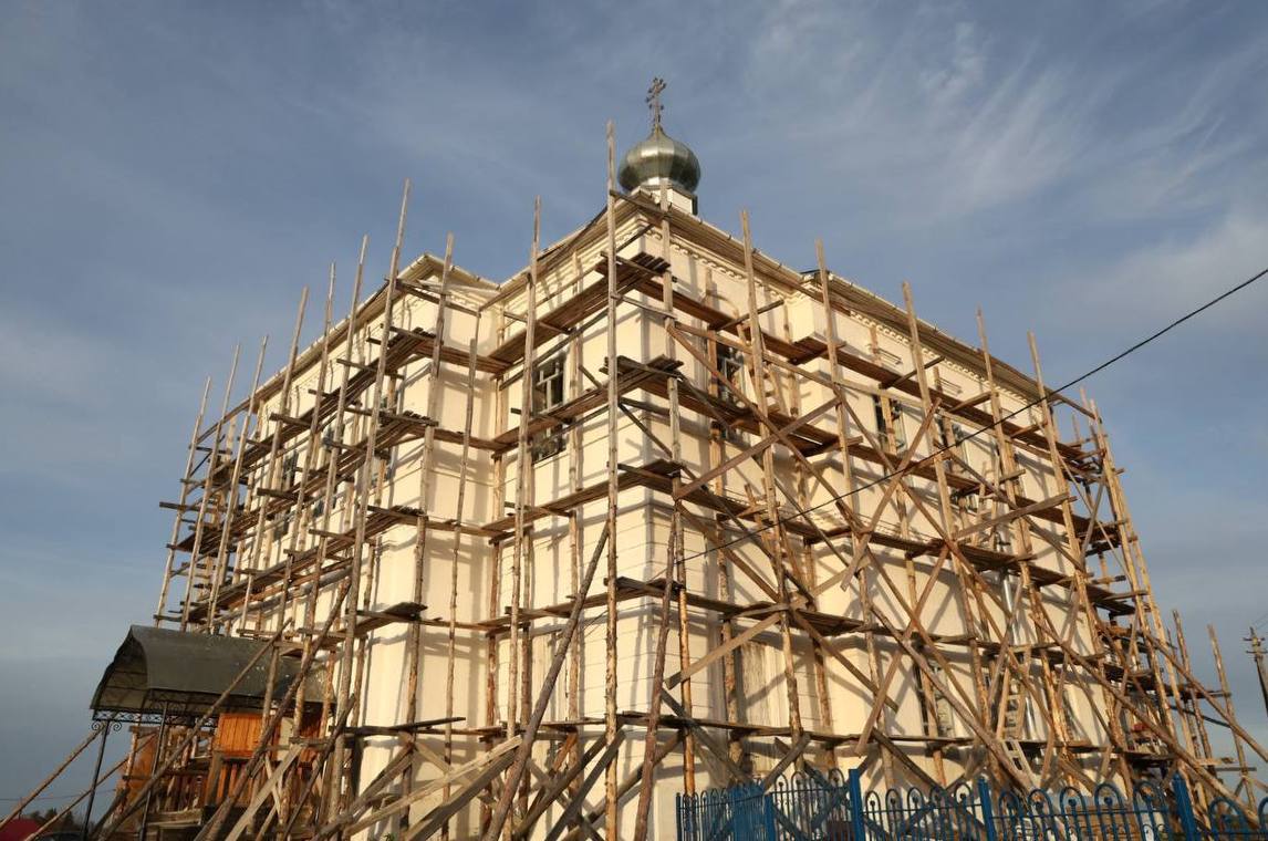 За последние два годы на восстановление святыни направлено 1,5 млн рублей. Уже выполнены работы по обновлению перекрытий, восстановлению купола и кровли, начаты штукатурные работы на фасаде.