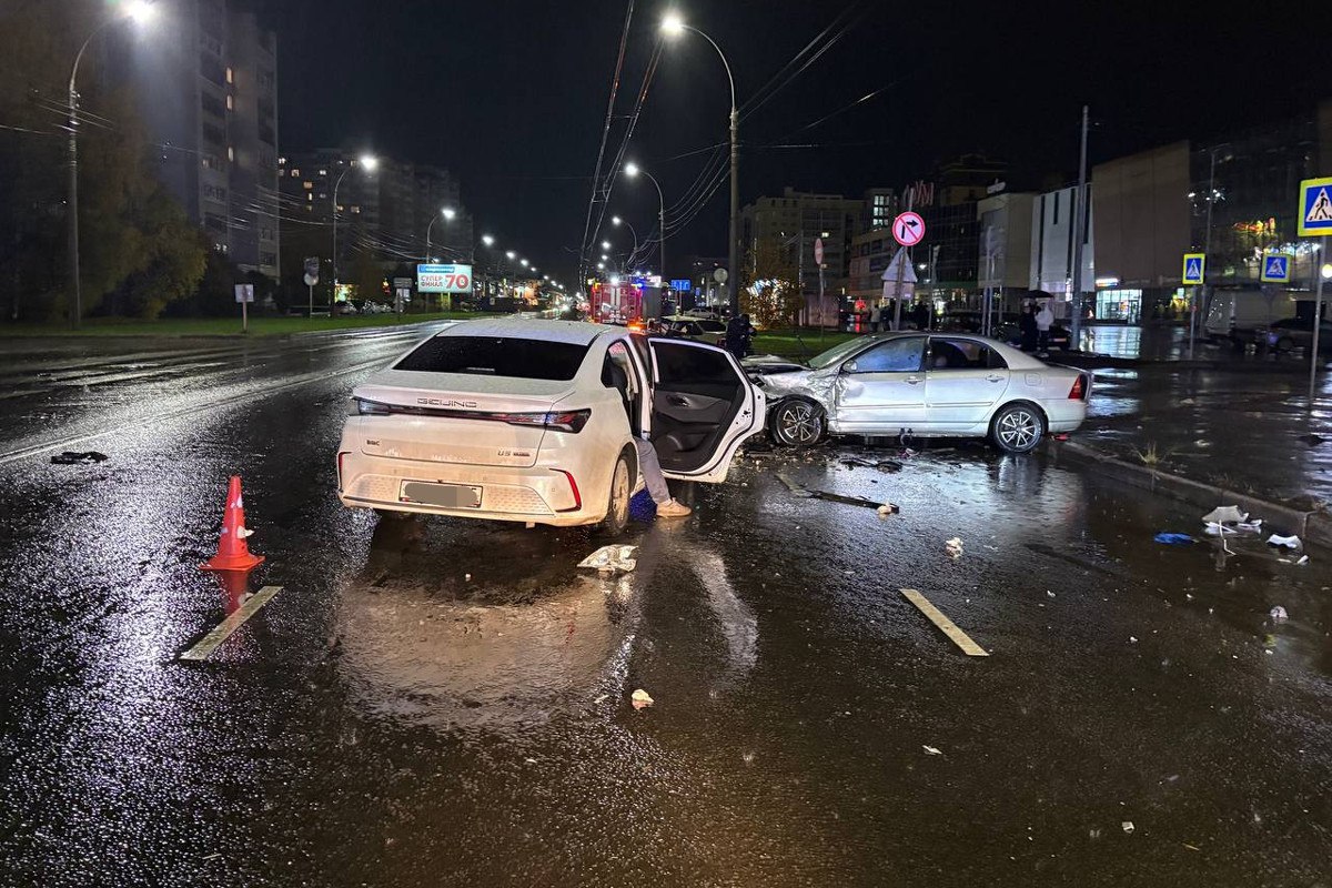 По предварительной информации, 19-летний водитель автомобиля «Toyota Corolla», двигавшийся в сторону улицы Петина, не справился с управлением и выехал на встречную полосу, где врезался в автомашину «Daewoo Nexia», за рулем которой находился мужчина 1993 года рождения. От удара при столкновении автомобиль «Toyota» отбросило на седан «BAIC U5 Plus», 51-летний водитель которого ехал в попутном направлении с «Daewoo».