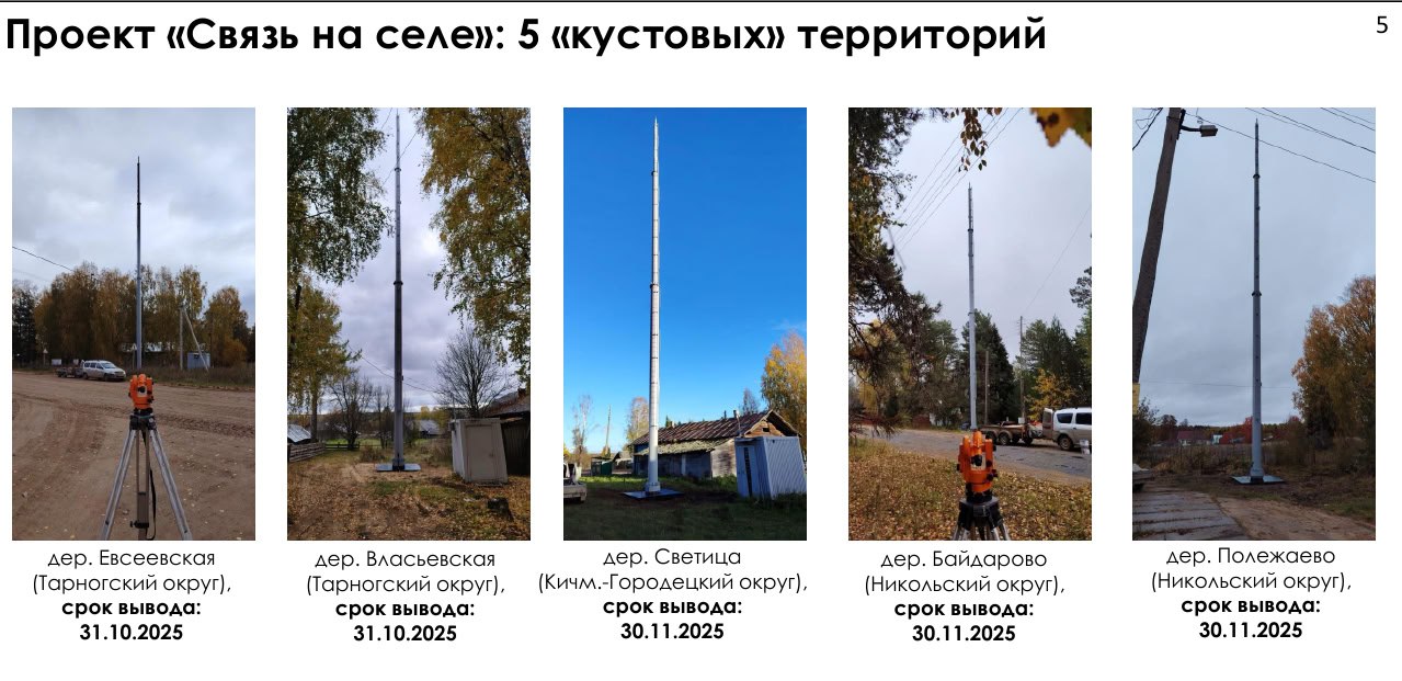 По проекту «Связь на селе» на 5 кустовых территориях запуск планируется до 30 ноября.