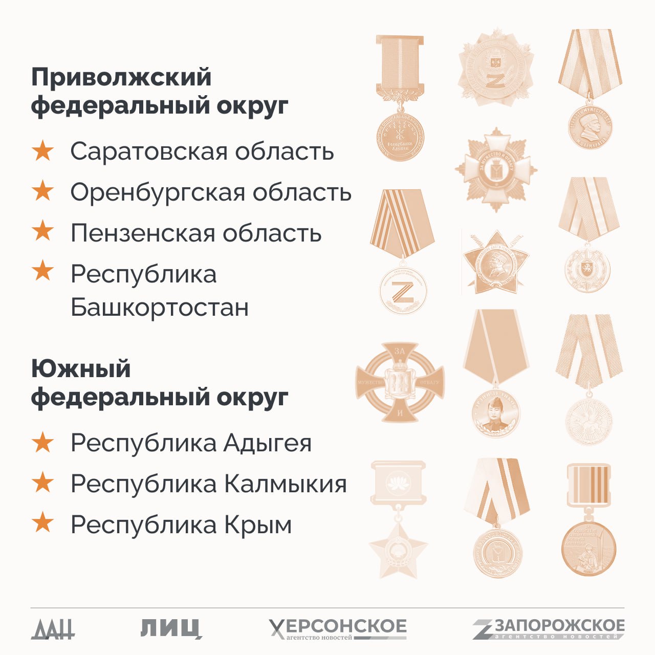 Мы рассказали о наградах, учрежденных в 27 регионах России, которыми отмечают участников СВО и тех, кто поддерживает спецоперацию.