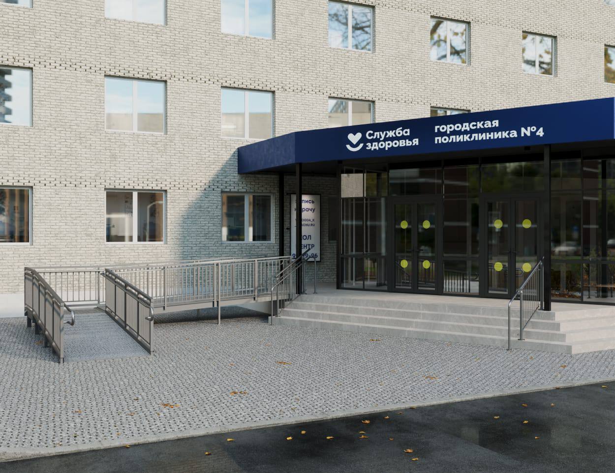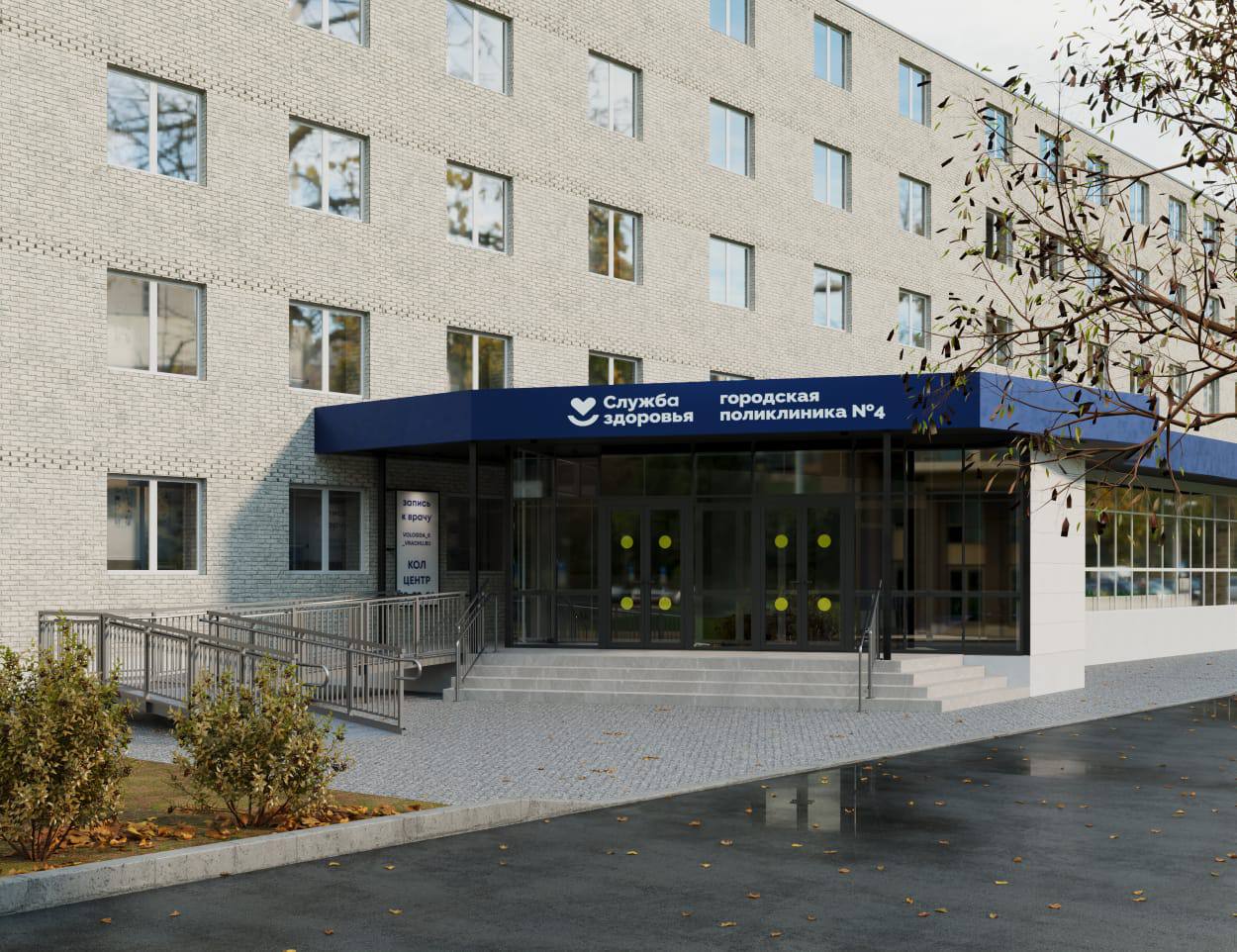 На фото — дизайн-проект нового крыльца Поликлиники №4 в Вологде.