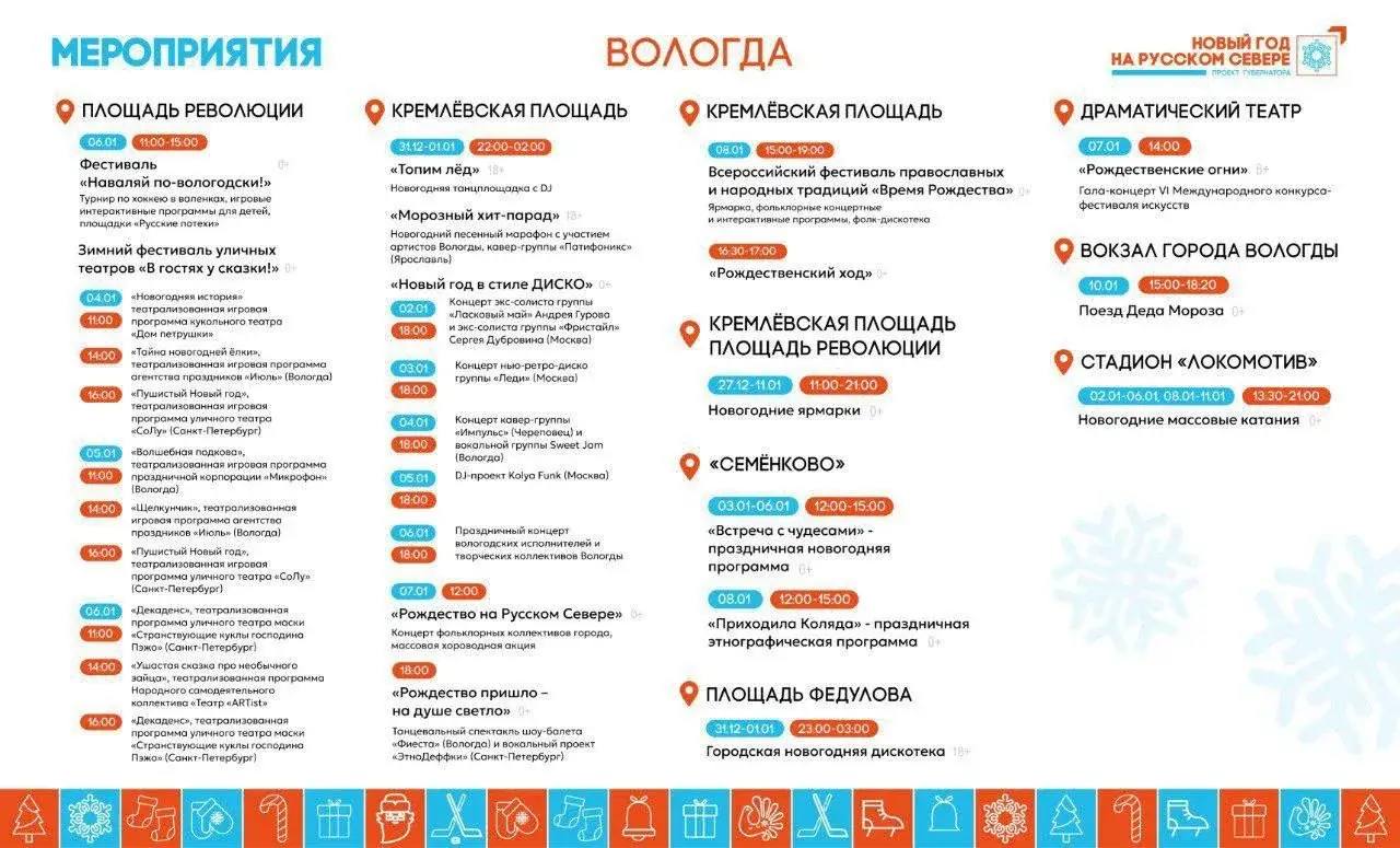 Афиша праздничной программы в Вологде