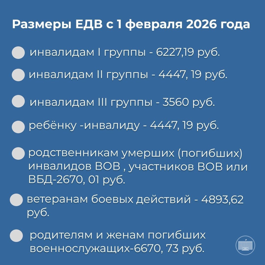 Одно из обращений касалось ежемесячных денежных выплат (ЕДВ). Напомним, что с 1 февраля 2026 года их размер будет проиндексирован.