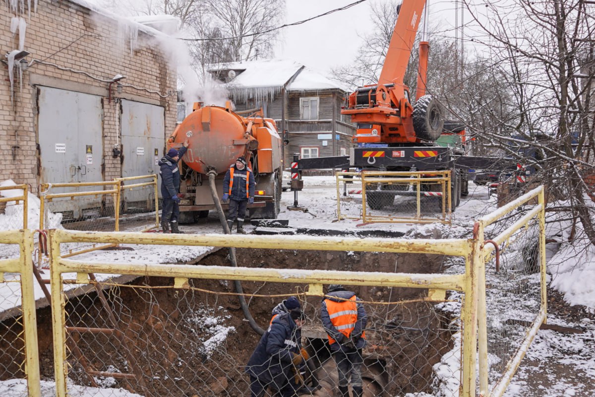 Работы по устранению аварии на теплосети в центре Вологды завершат до конца дня