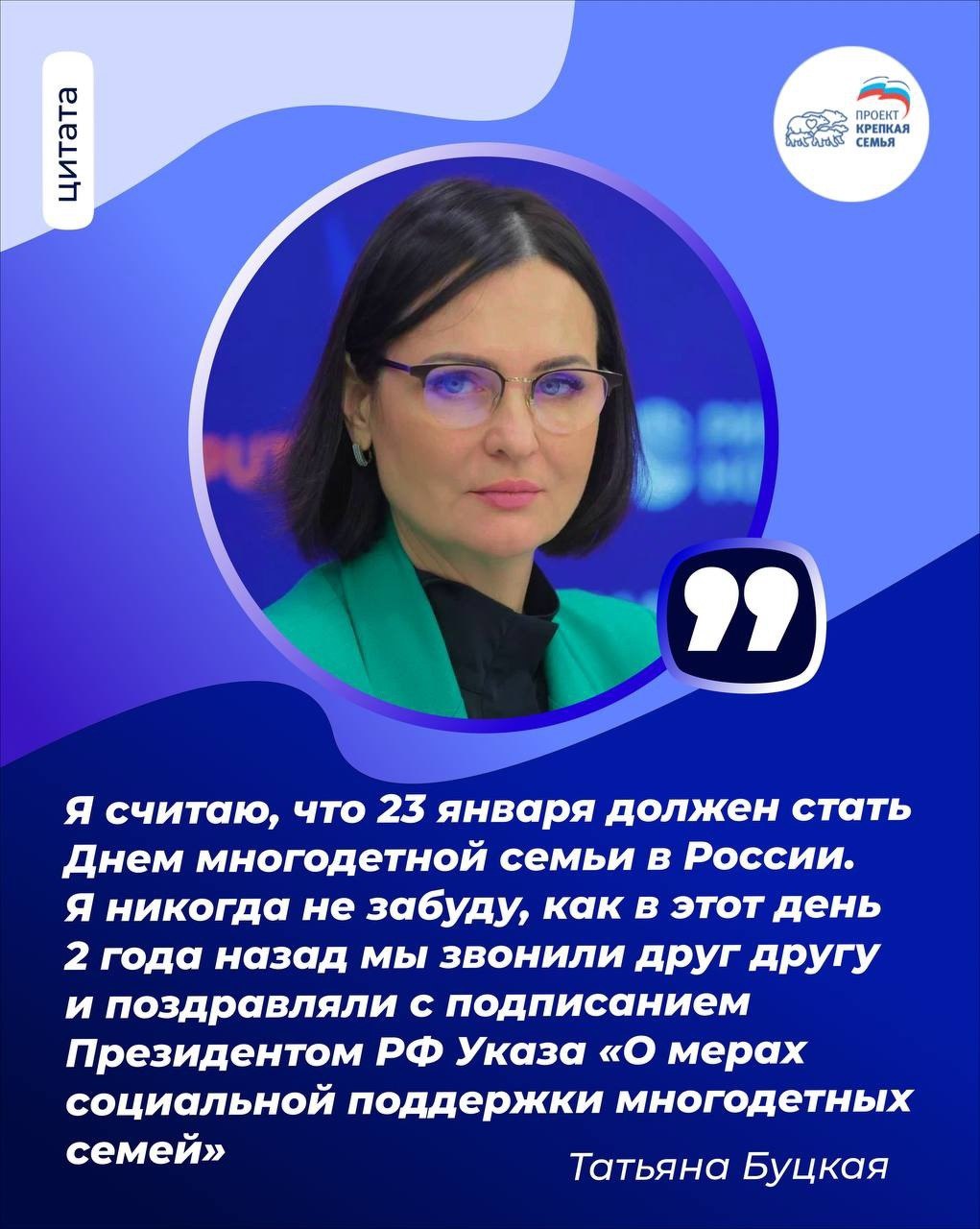 На встрече Татьяна Буцкая подчеркнула, что Указом Президента РФ № 63 «О мерах социальной поддержки многодетных семей» закреплен единый федеральный статус и система мер помощи, а это мощный старт для дальнейшего развития.