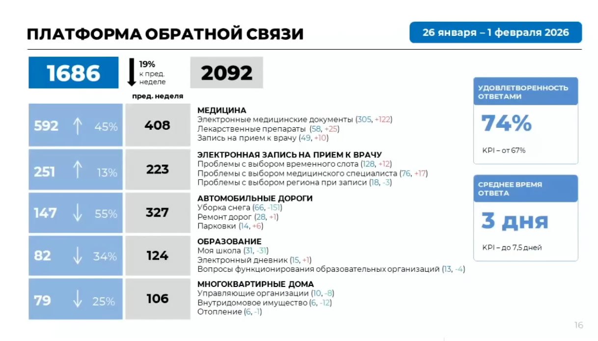 Среднее время ответа жителям в Вологодской области составляет 3 дня. KPI по России — 7 дней.