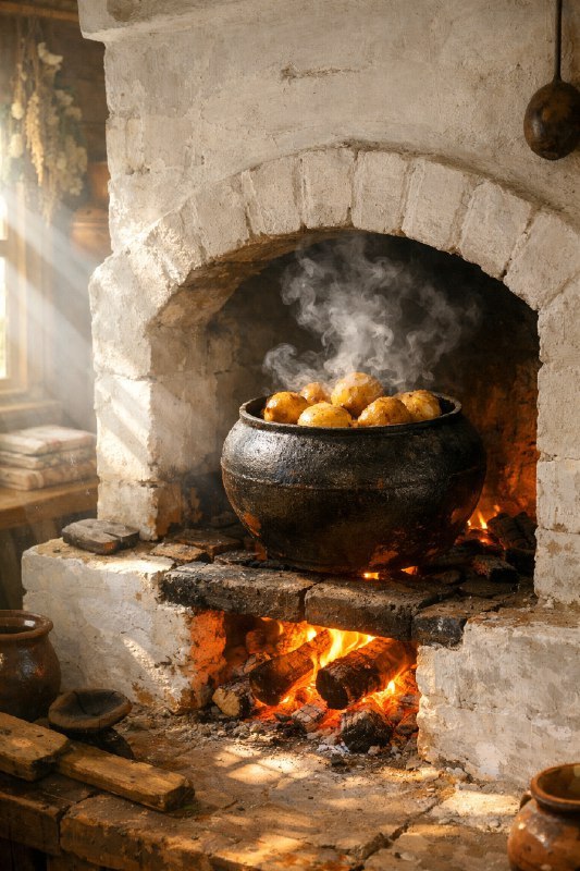 Идея №3: Уехать в деревню, подальше от суеты. Затопить печь, чтобы по дому пошел аромат дров, и сварить полный чугунок картошки... Ммм, тихое счастье!